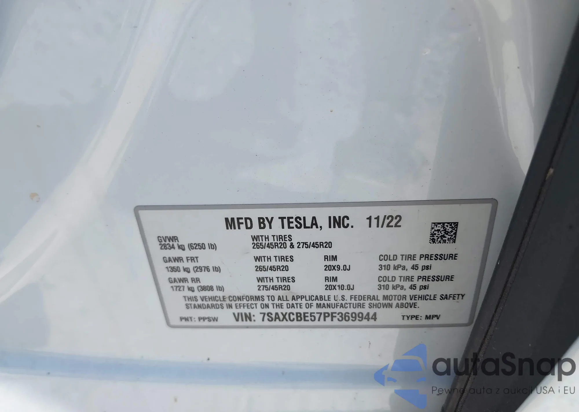 LOT: 43117890 VIN: 7SAXCBE57PF369944
