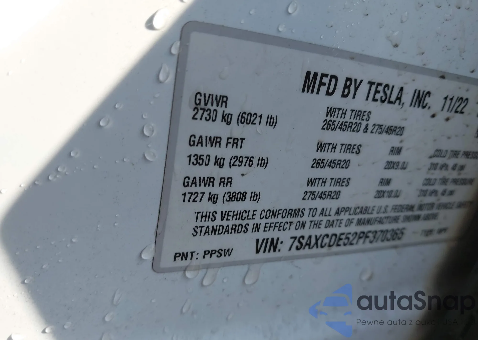 • VIN 7SAXCDE52PF370365