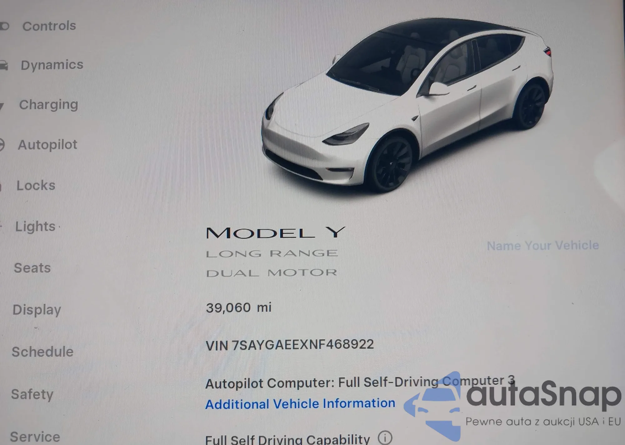 2022 Tesla Model Y из США, поврежденный, VIN 7SAYGAEEXNF468922