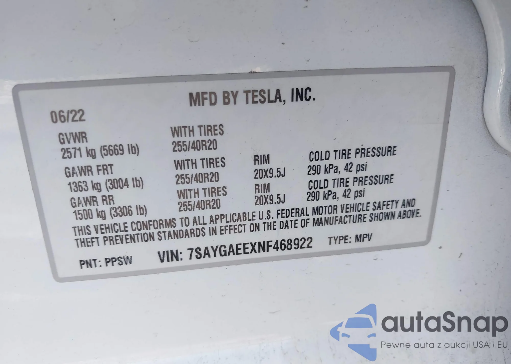 • VIN 7SAYGAEEXNF468922