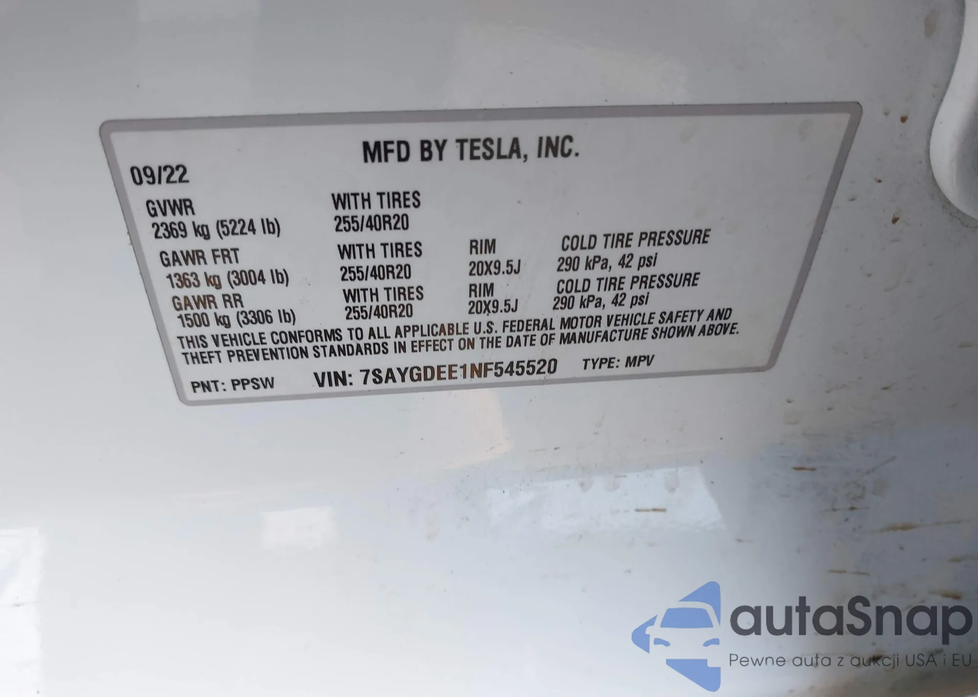 • VIN 7SAYGDEF5NF323622
