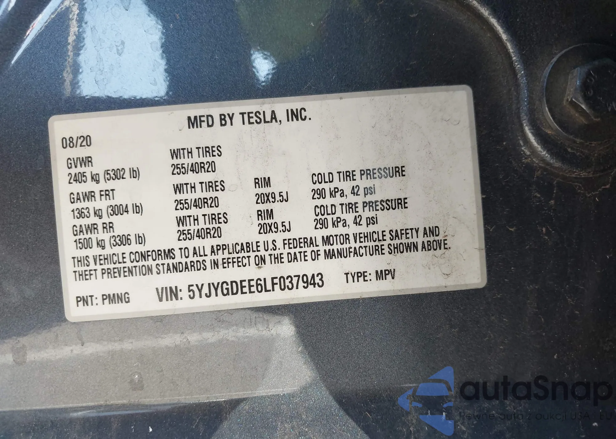 LOT: 43050963 VIN: 5YJYGDEF0LF001173