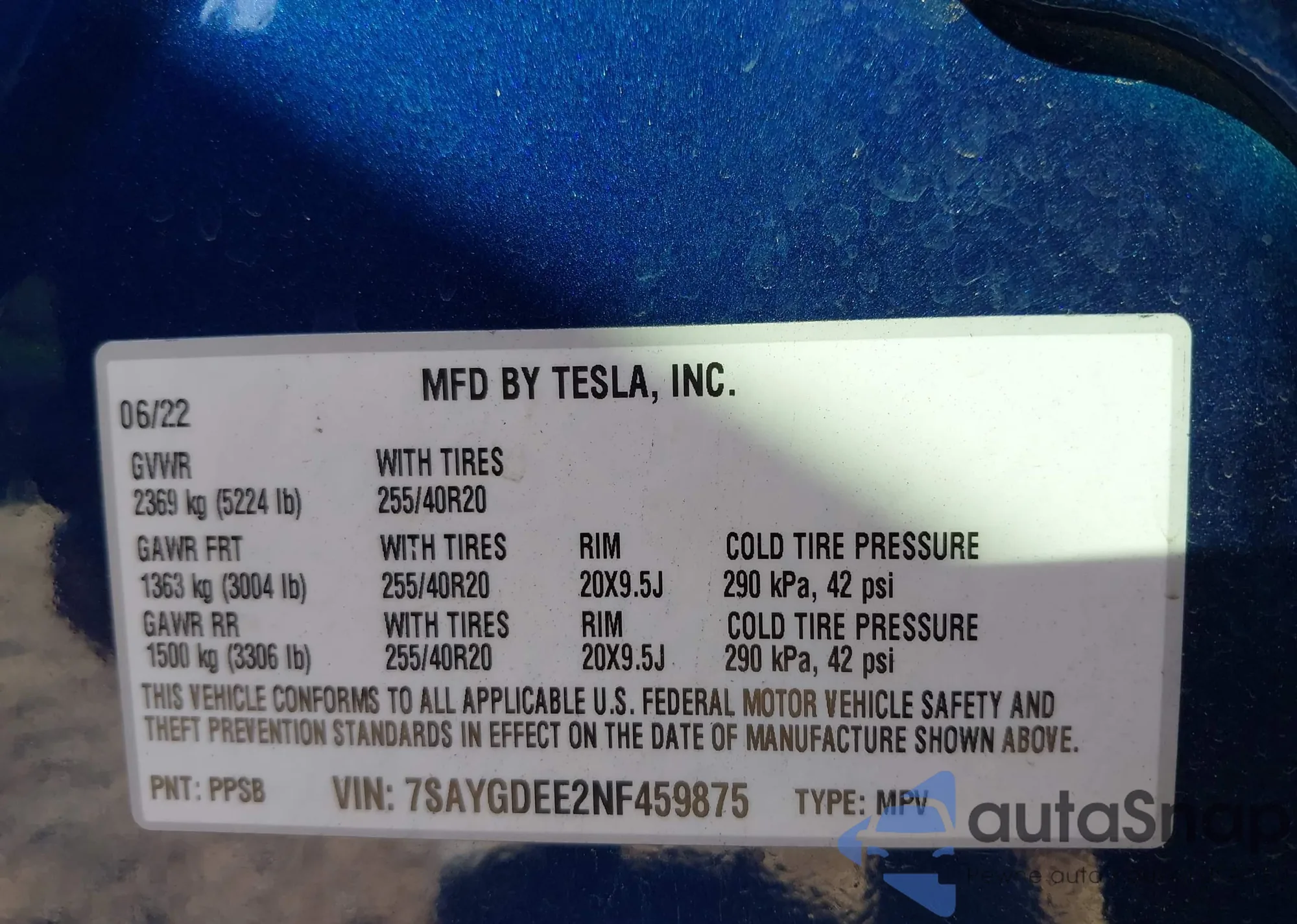 • VIN 7SAYGDEE2NF459875
