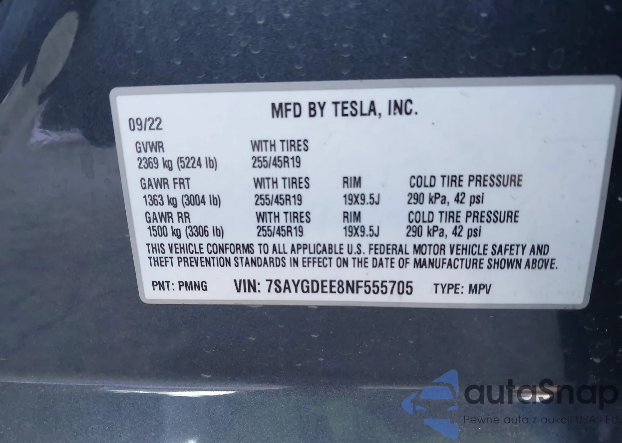• VIN 7SAYGDEF4NF558125