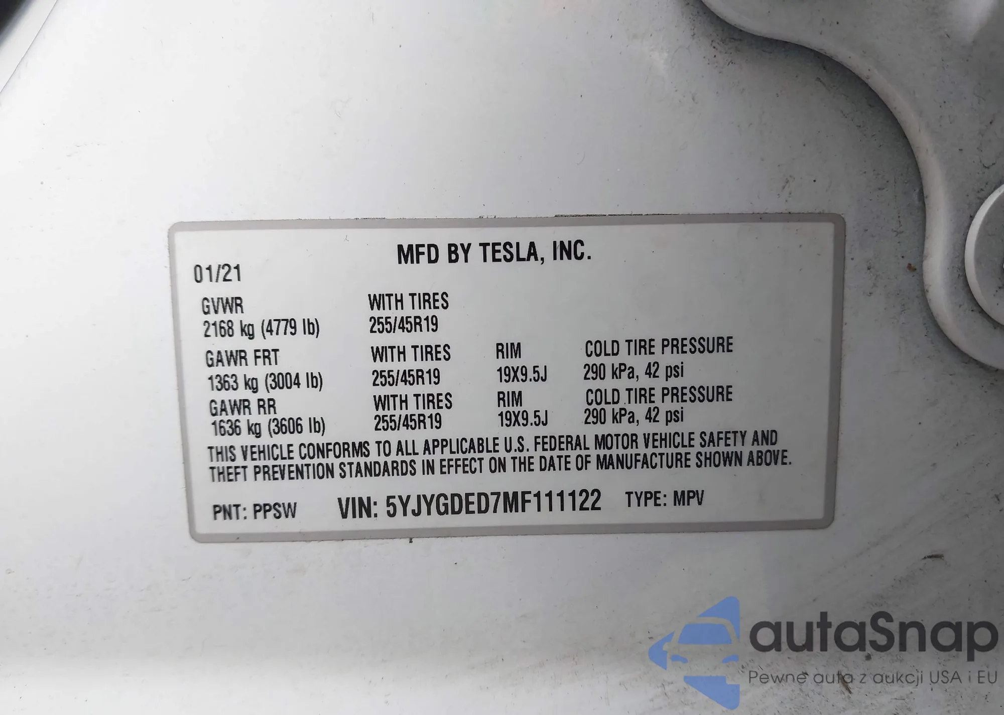 • VIN 5YJYGDED7MF111122
