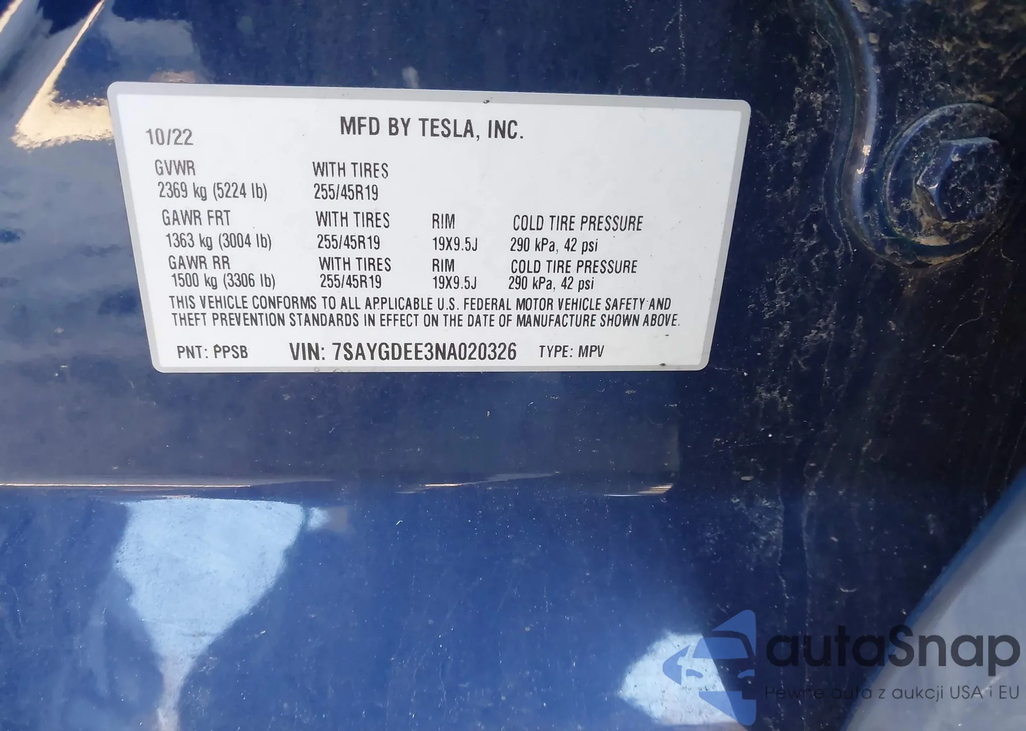 • VIN 7SAYGDEE3NA020326