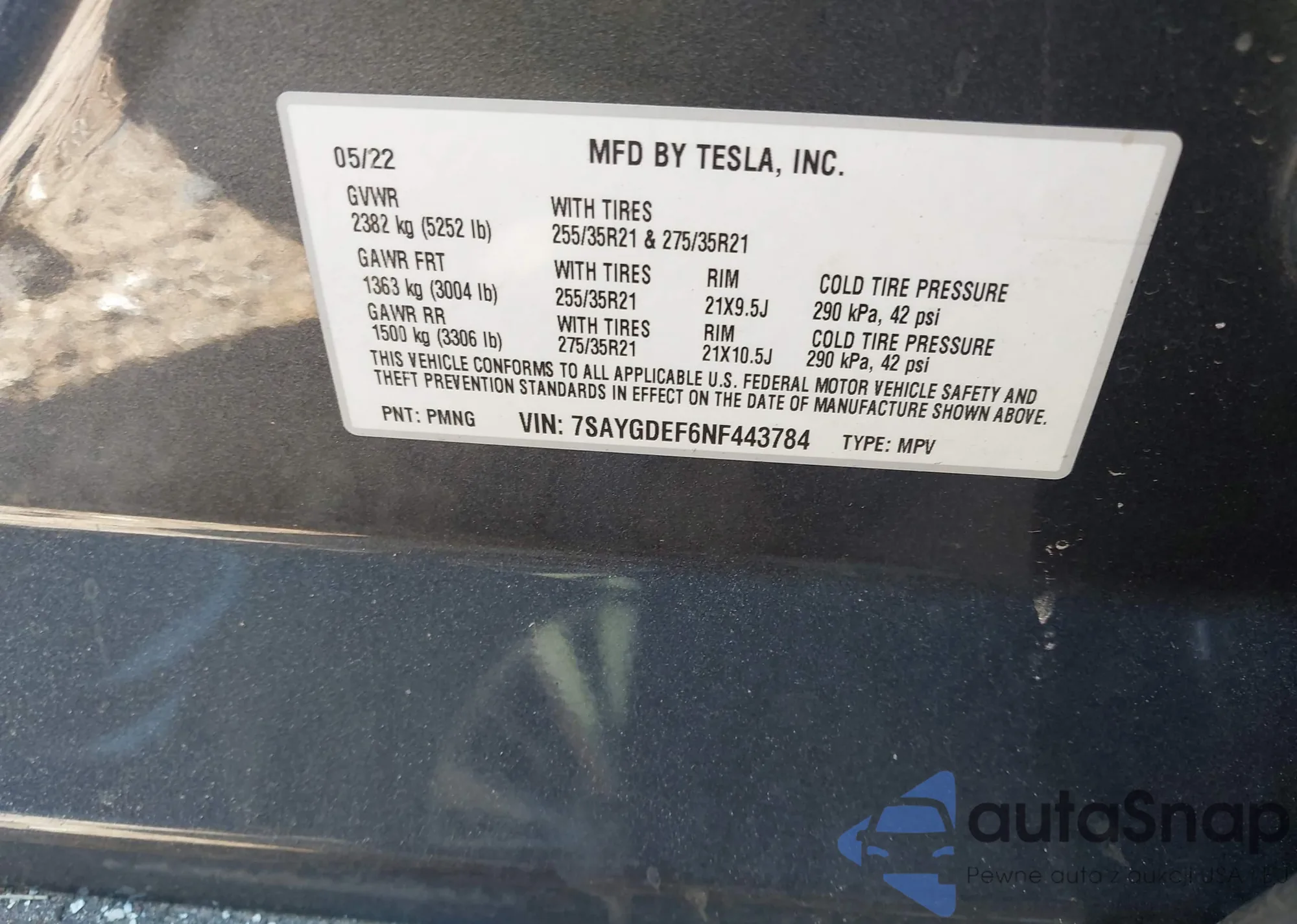 • VIN 7SAYGDEF6NF443784
