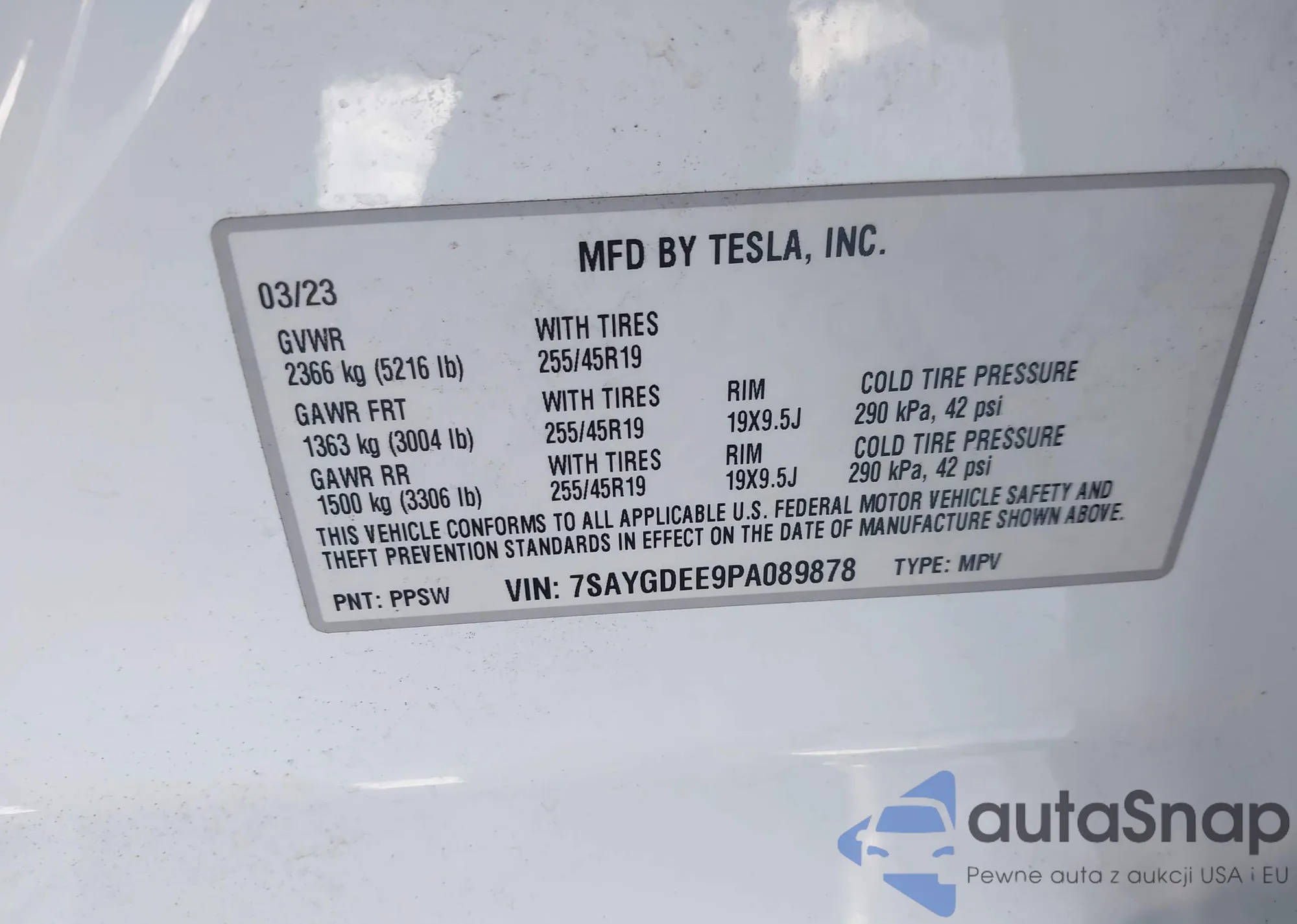 • VIN 7SAYGDEE9PA089878
