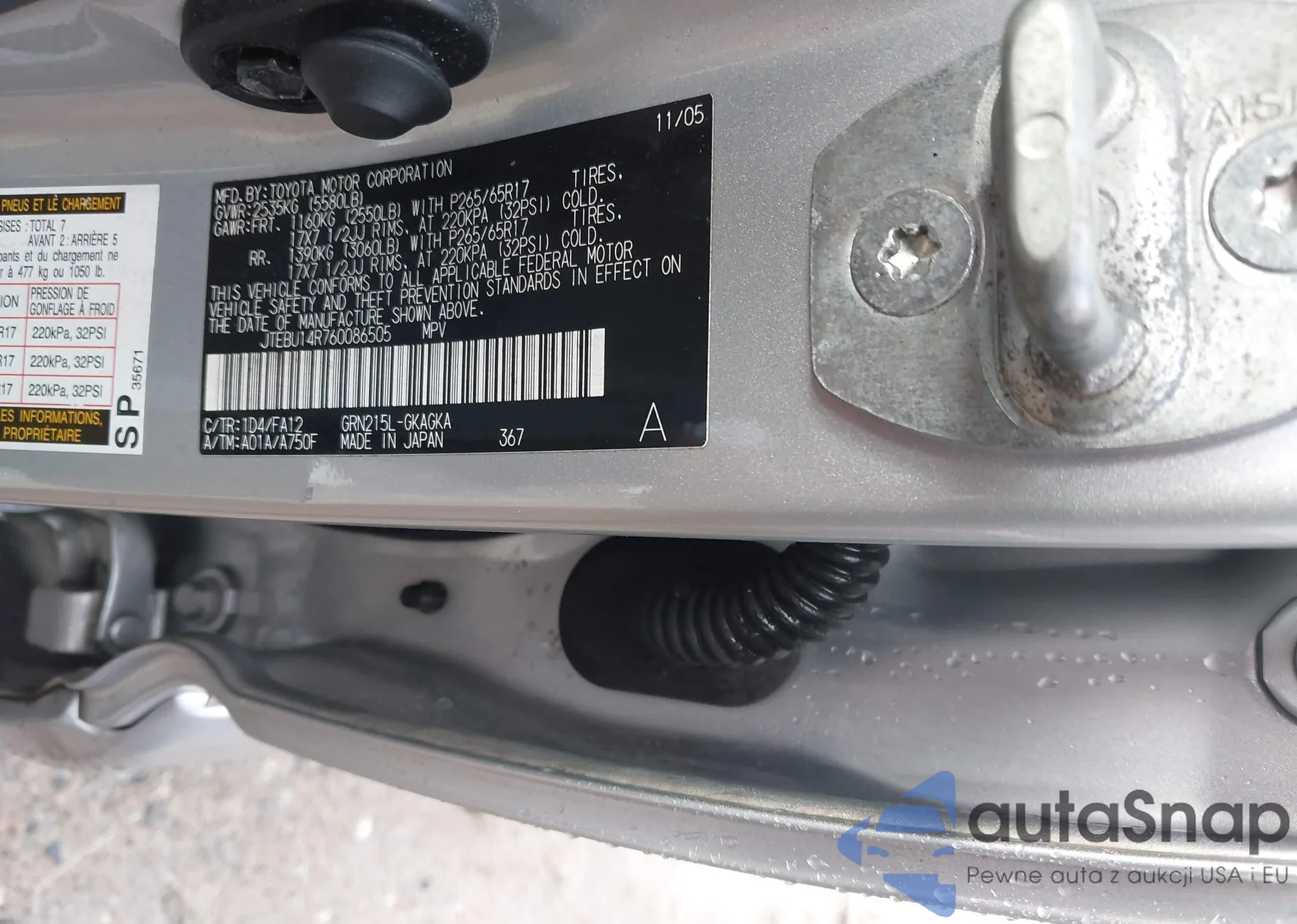 LOT: 43505017 VIN: JTEBU14R760086505