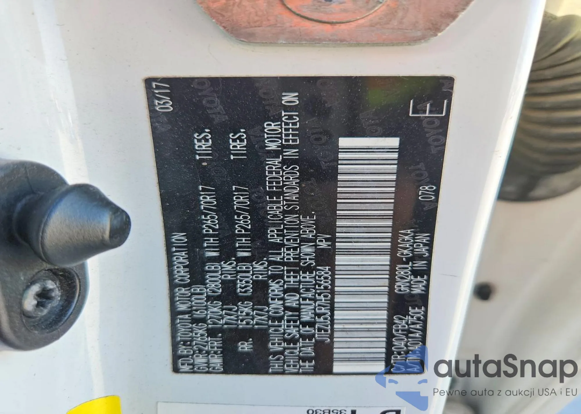 LOT: 98861565 VIN: JTEZU5JR7H5156584