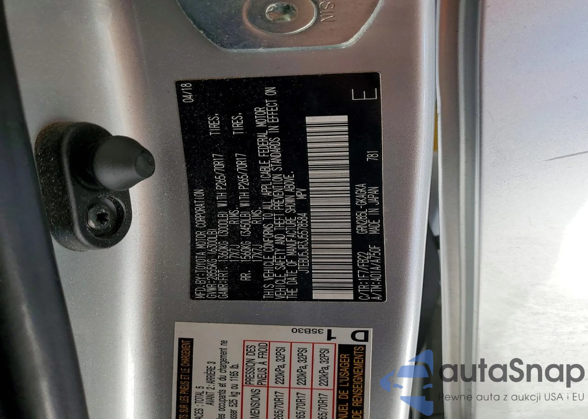 LOT: 76644335 VIN: JTEBU5JR3J5578584
