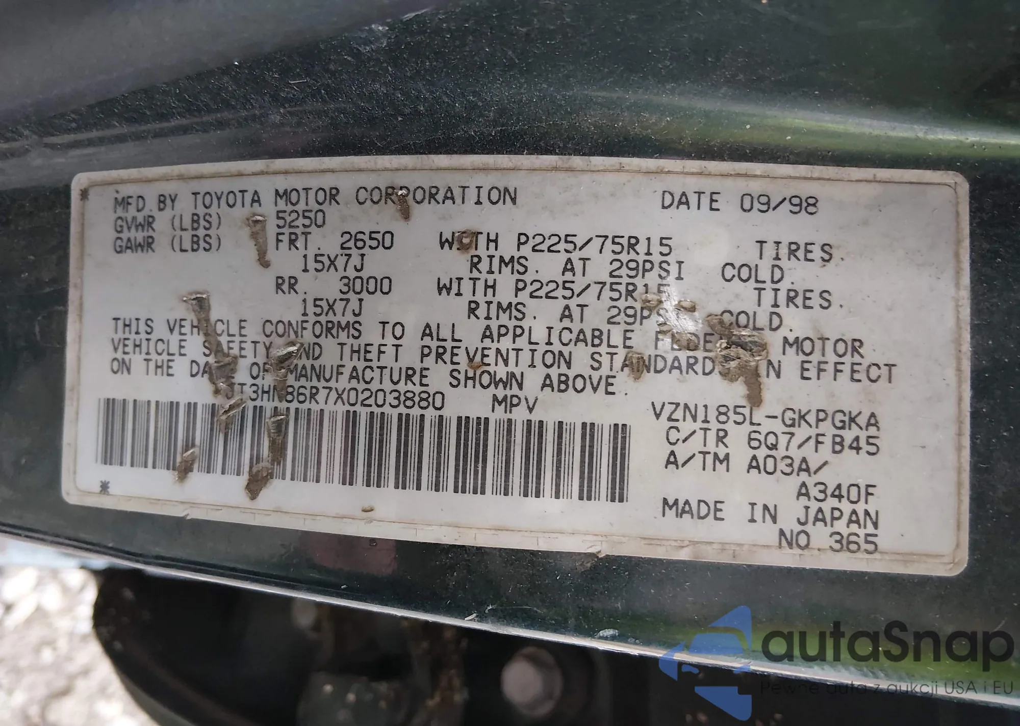 • VIN JT3HN86R7X0203880