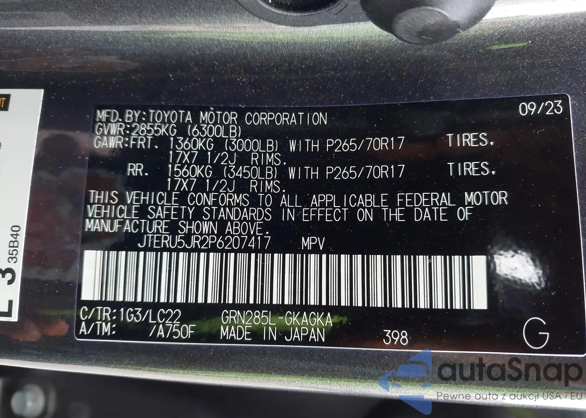 LOT: 44350546 VIN: JT3HN87R9Y0267676