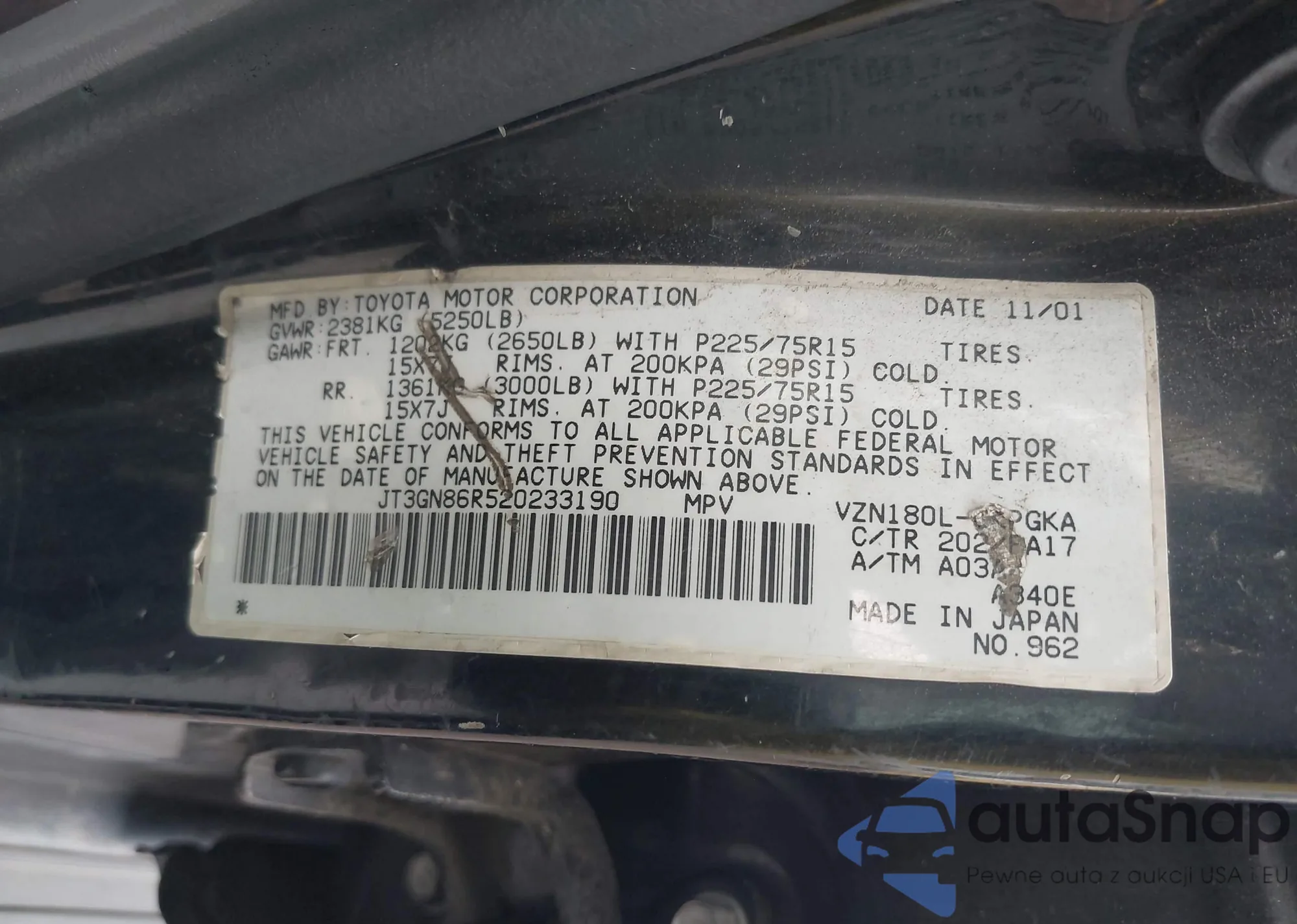 LOT: 44058182 VIN: JT3GN86R520233190
