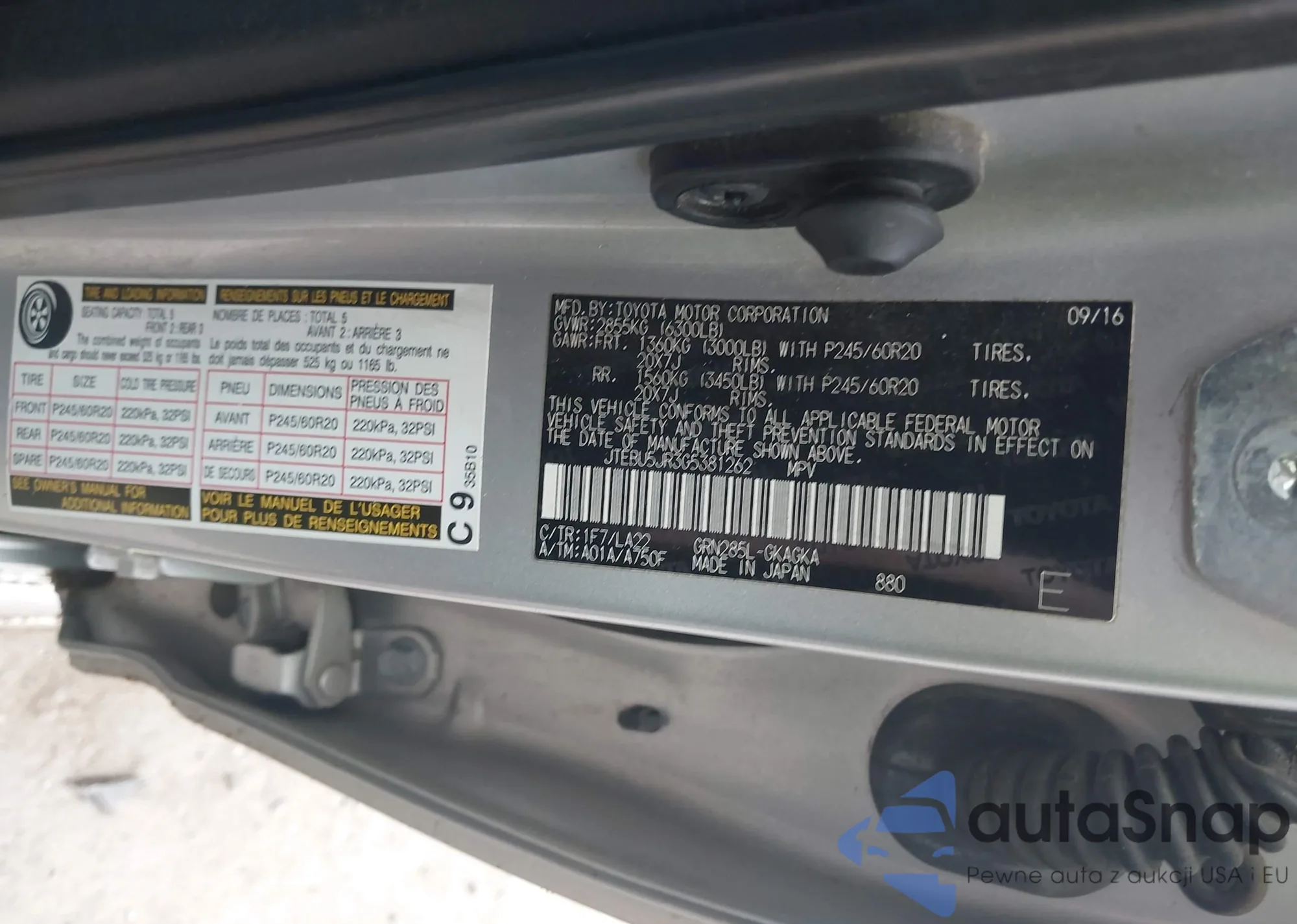 LOT: 44066081 VIN: JTEBU5JR3G5381262