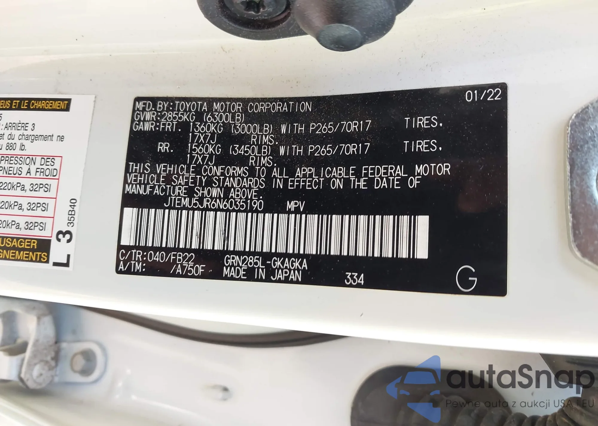 LOT: 44195311 VIN: JTEDU5JR2N5276878