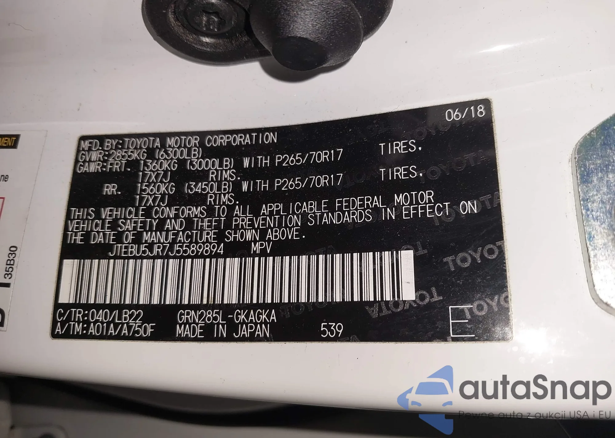 LOT: 44189416 VIN: JTEBU5JR7J5589894