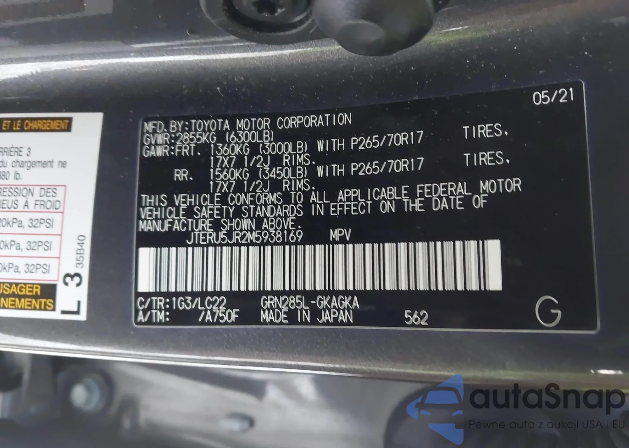 LOT: 44203488 VIN: JTERU5JR2M5938169