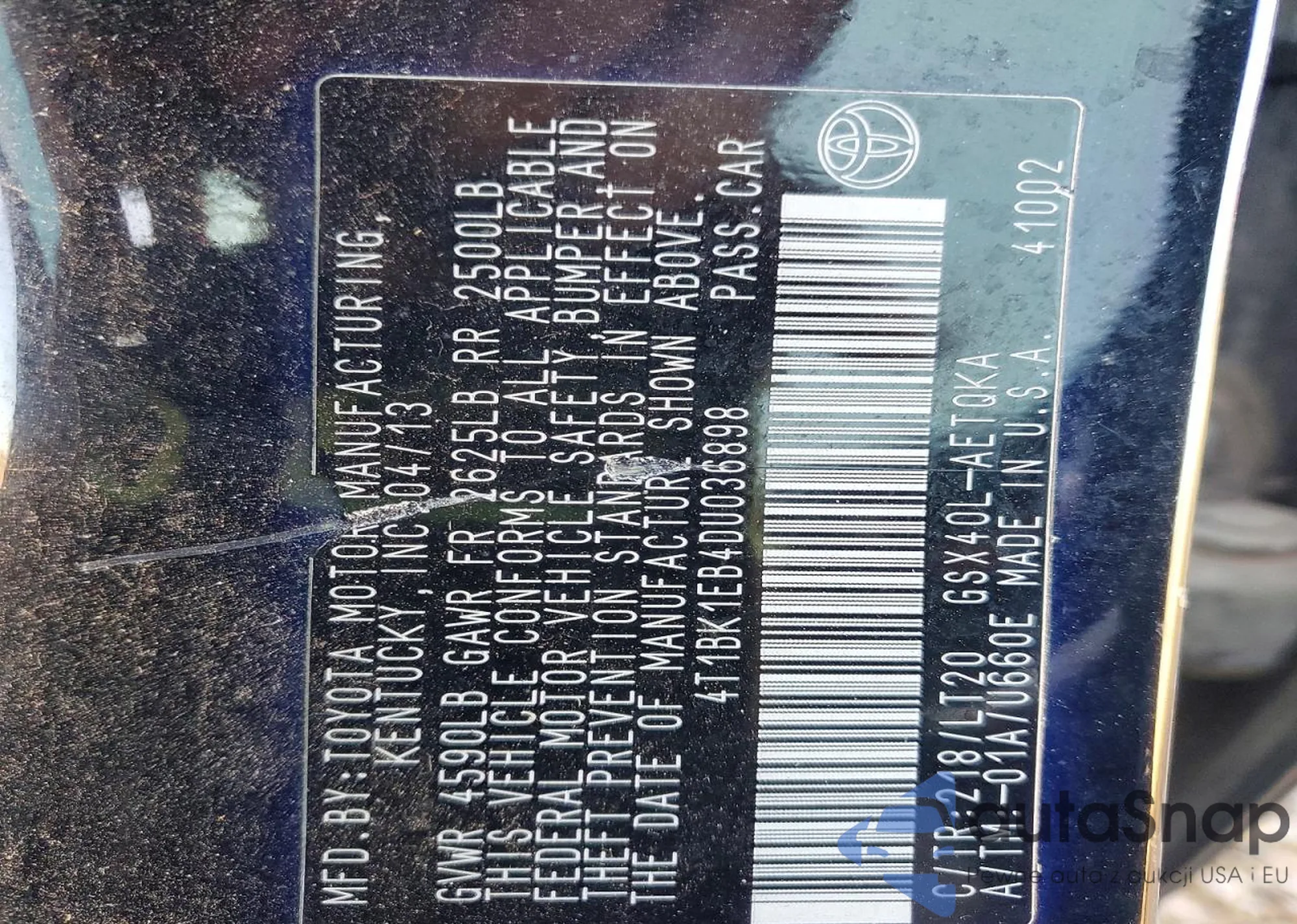 • VIN 4T1BK1EB4DU036898