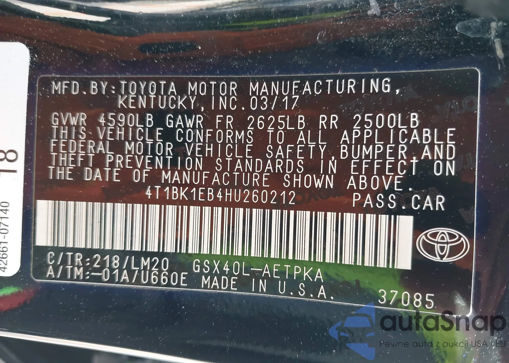• VIN 4T1BK1EB4HU260212