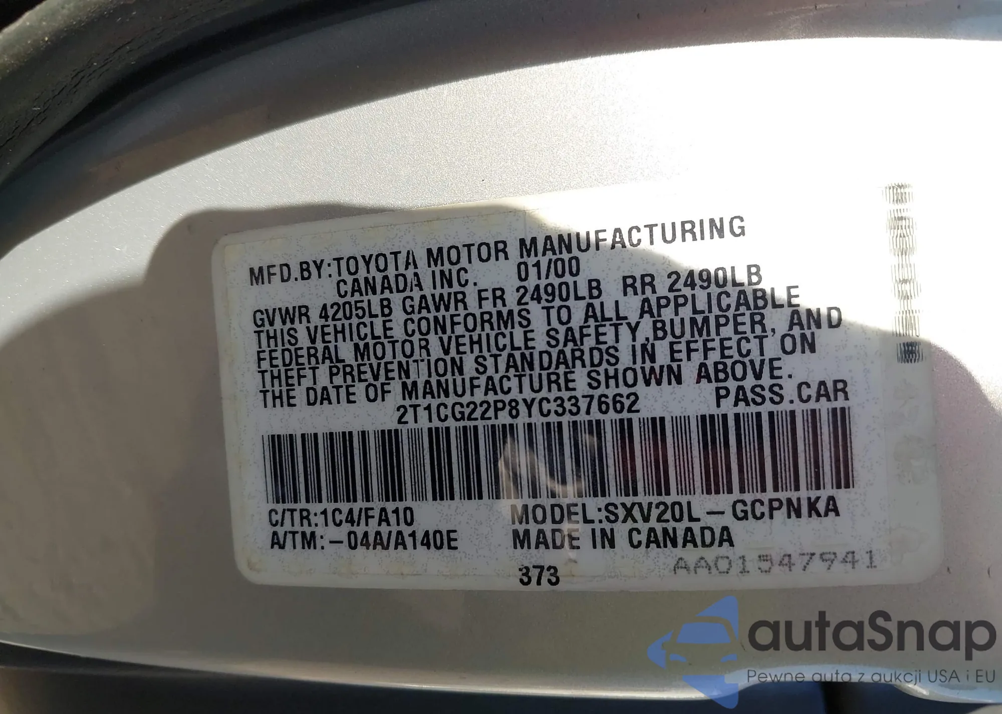 • VIN 2T1CF28P7YC275374