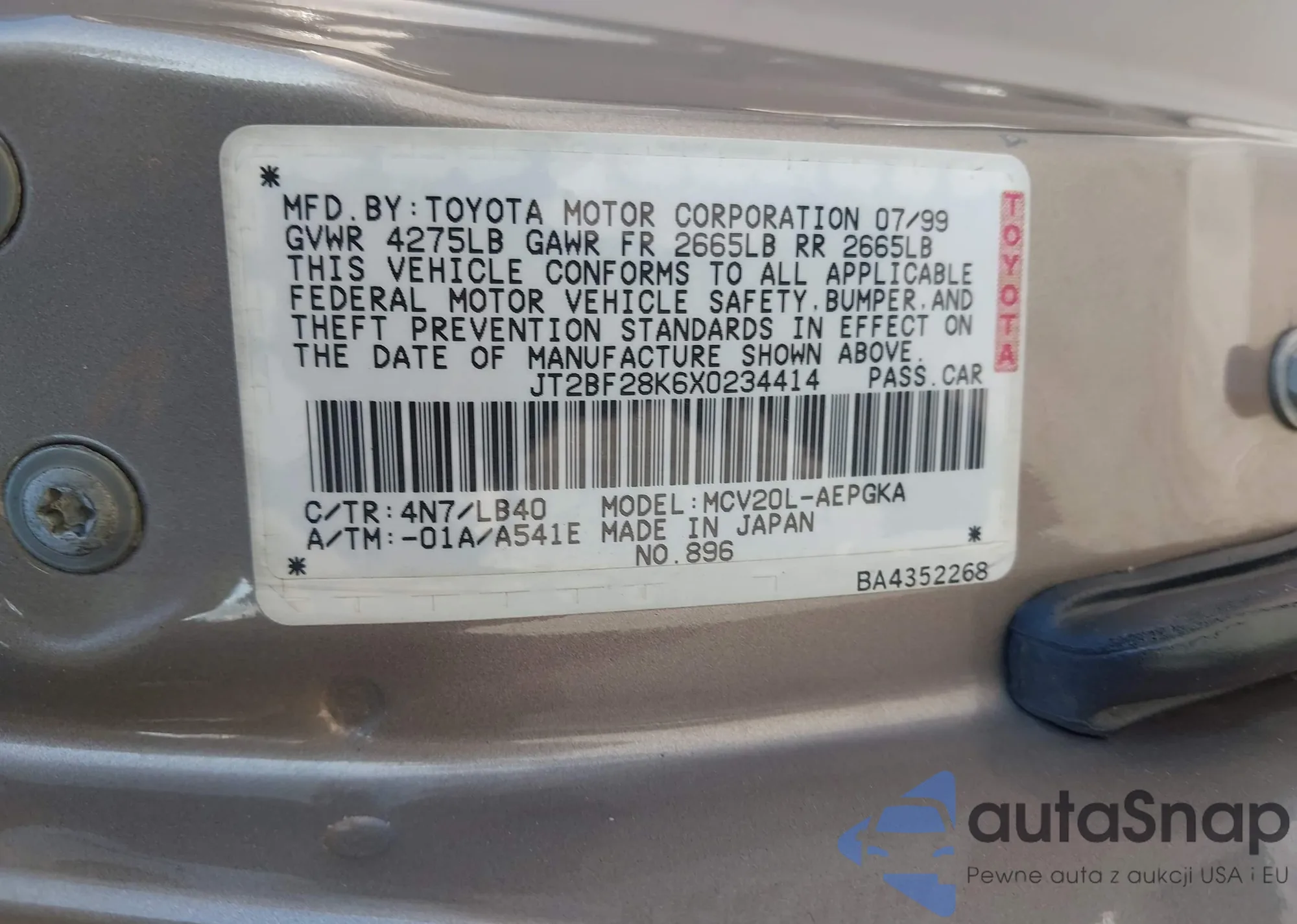 • VIN 4T1BF28K7XU090013