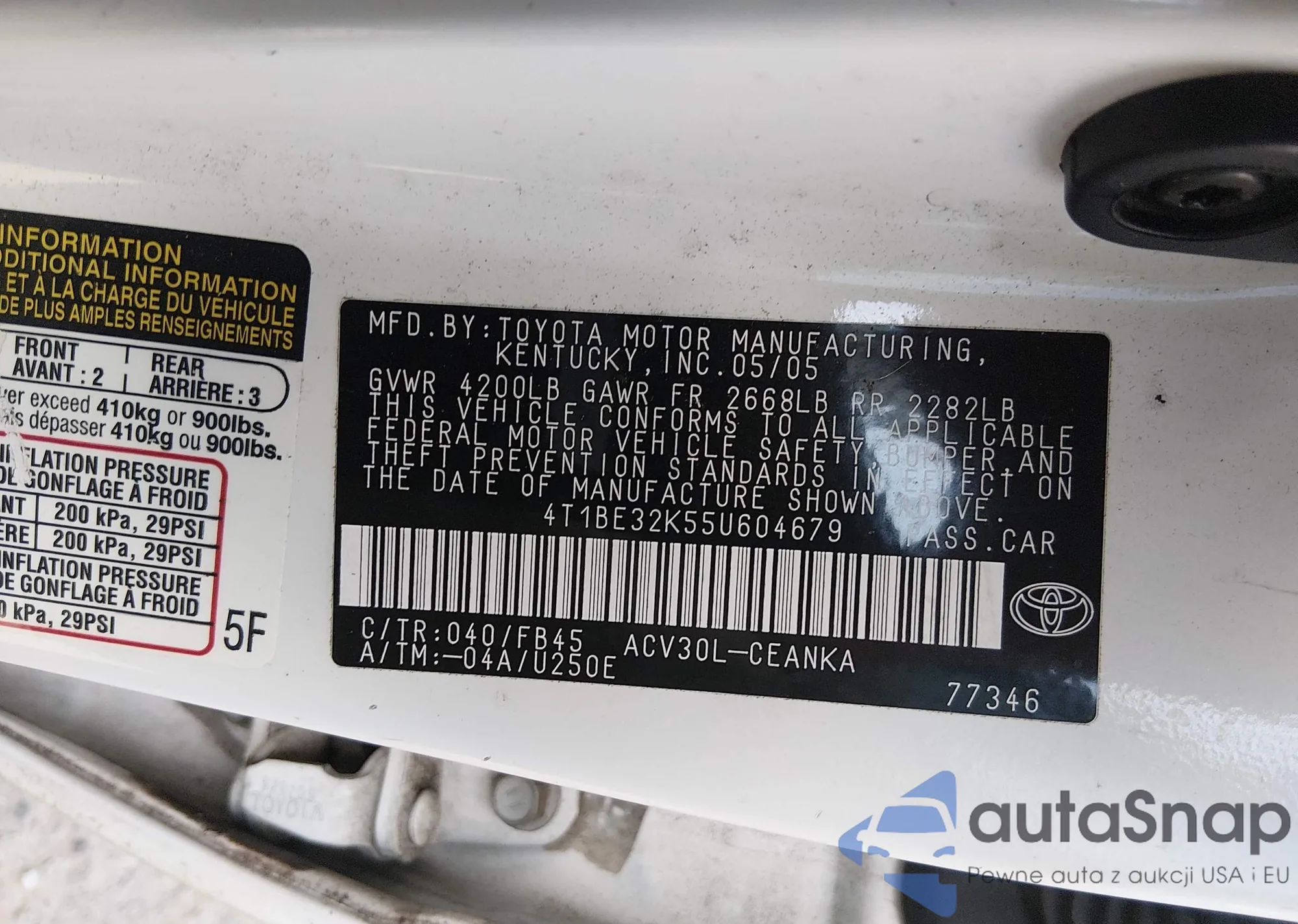 • VIN 4T1BE32K55U604679