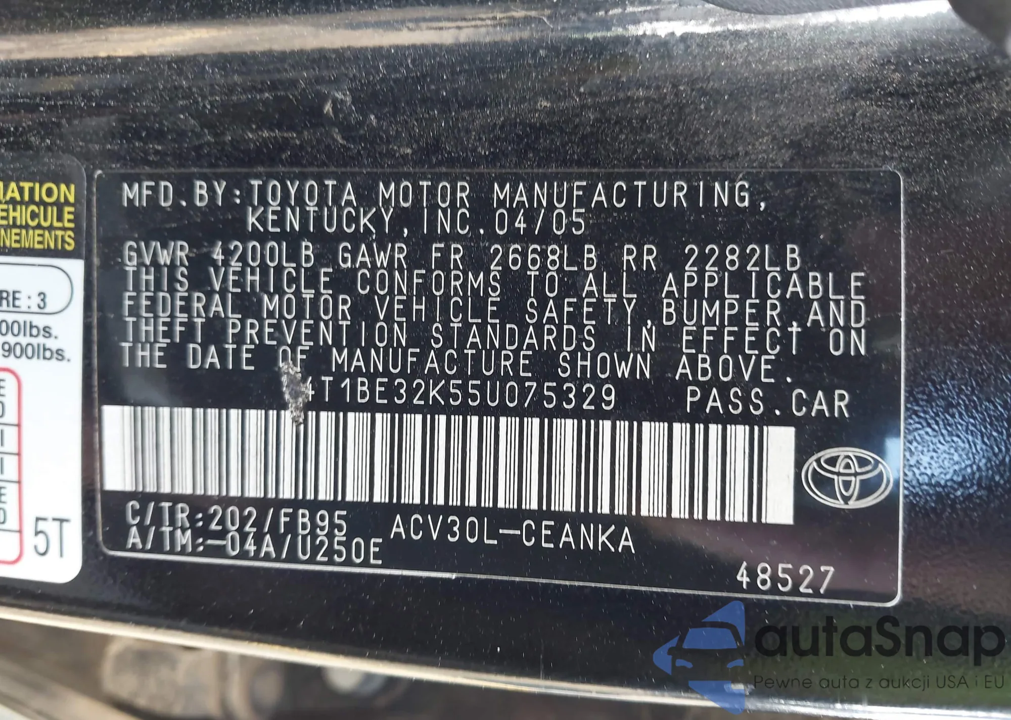 • VIN 4T1BE32K55U075329