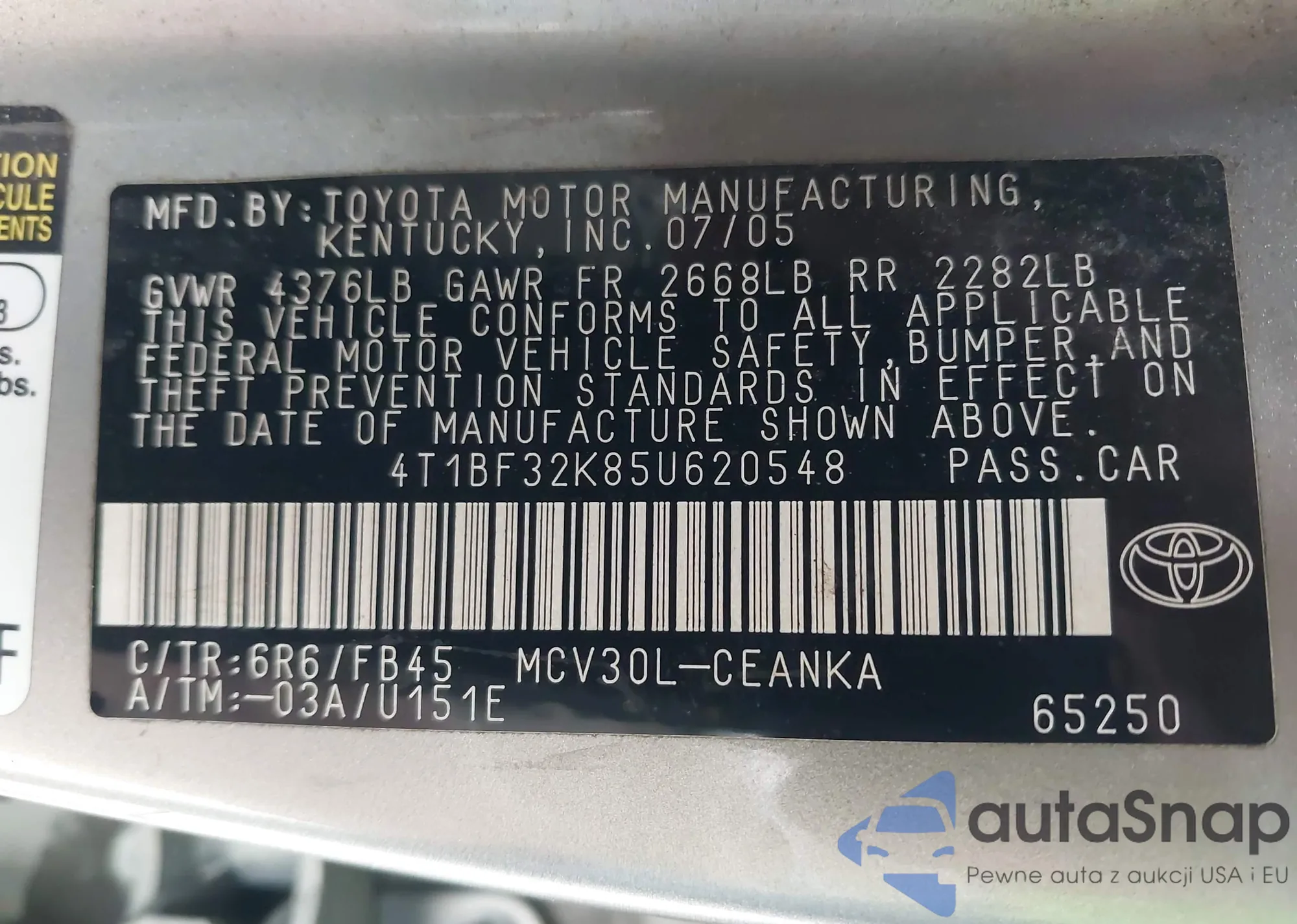 • VIN 4T1BF32K85U620548