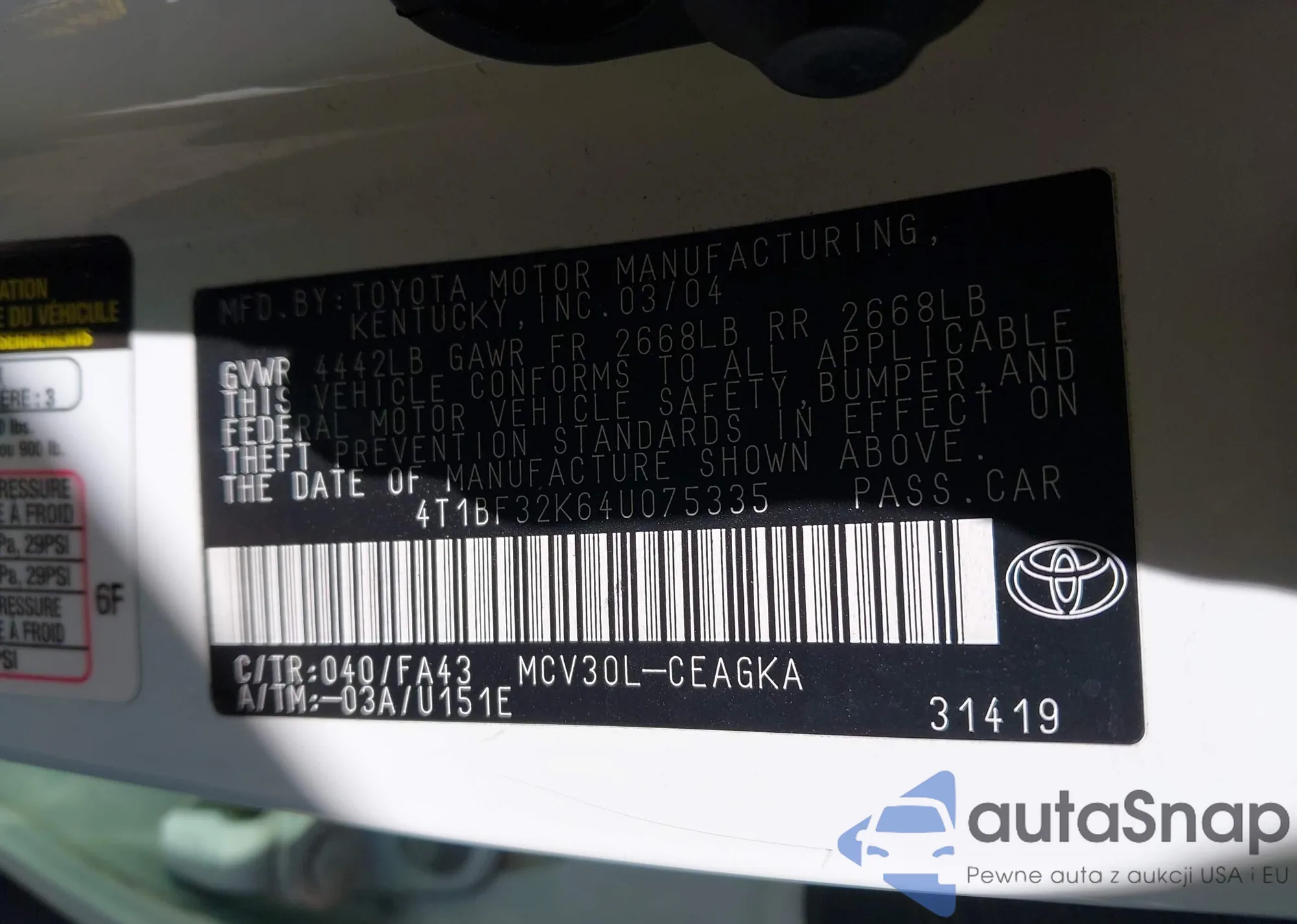 • VIN 4T1BF32K64U075335