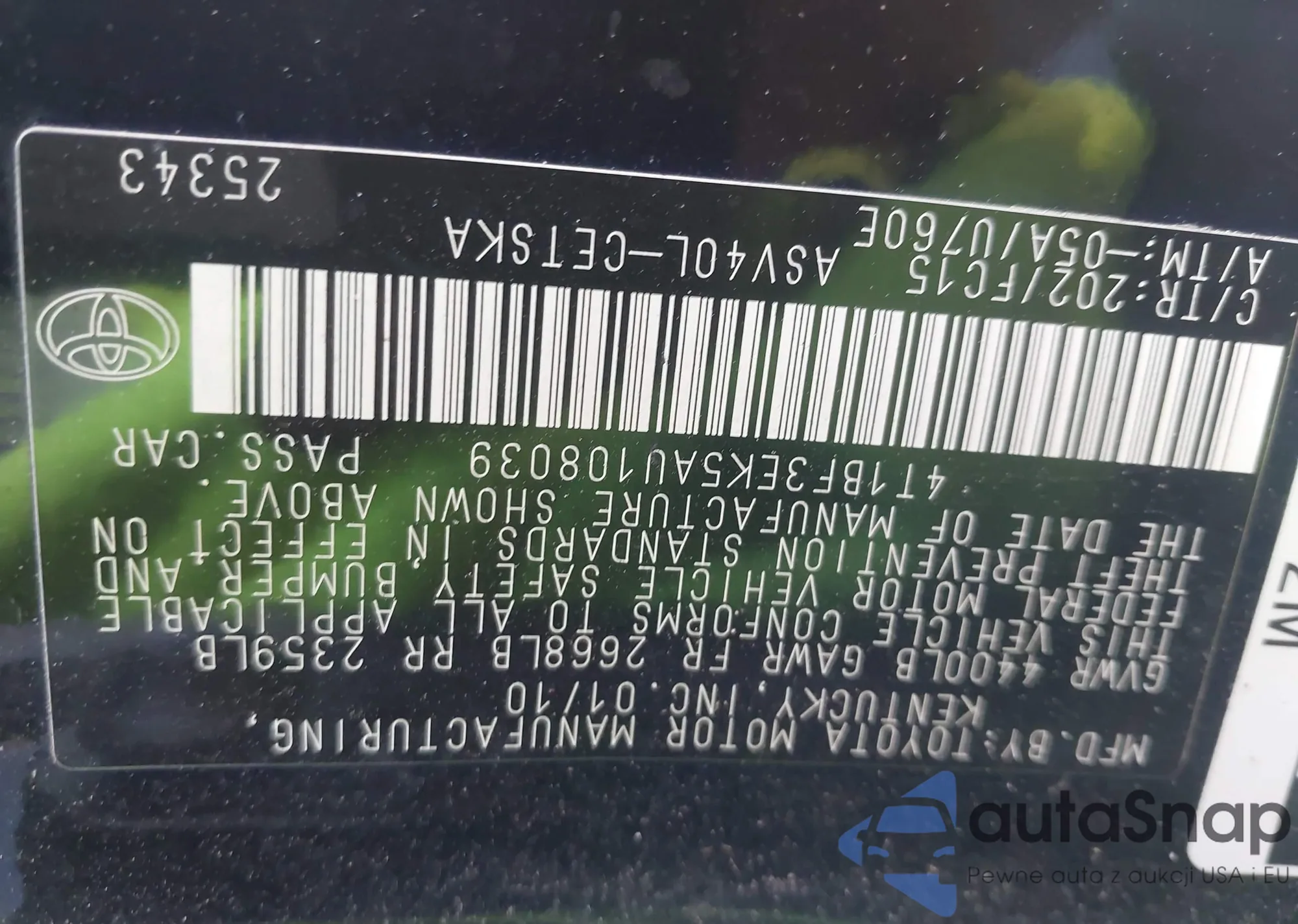 LOT: 43905568 VIN: 4T1BF3EK5AU108039