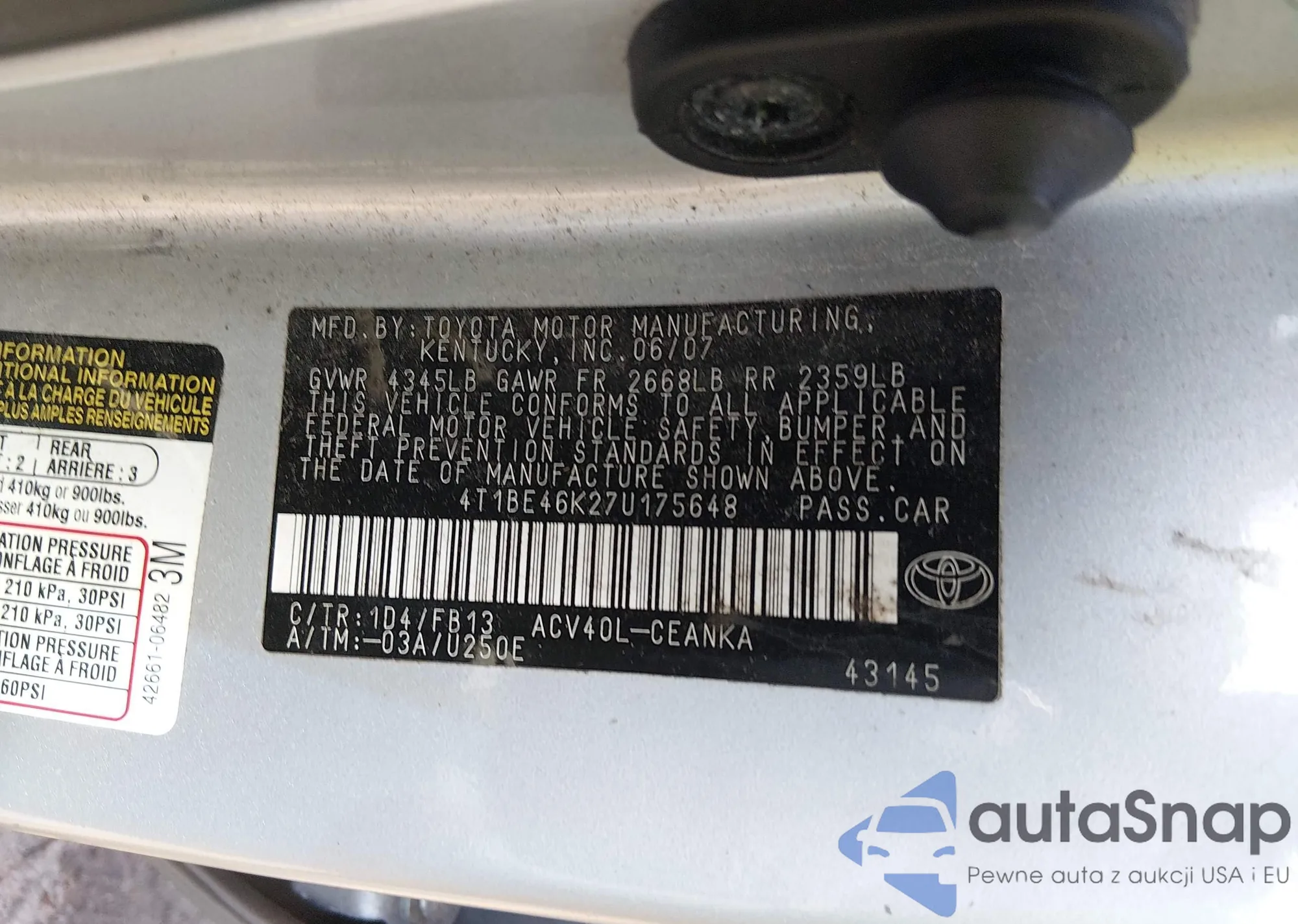 • VIN 4T1BE46K27U175648