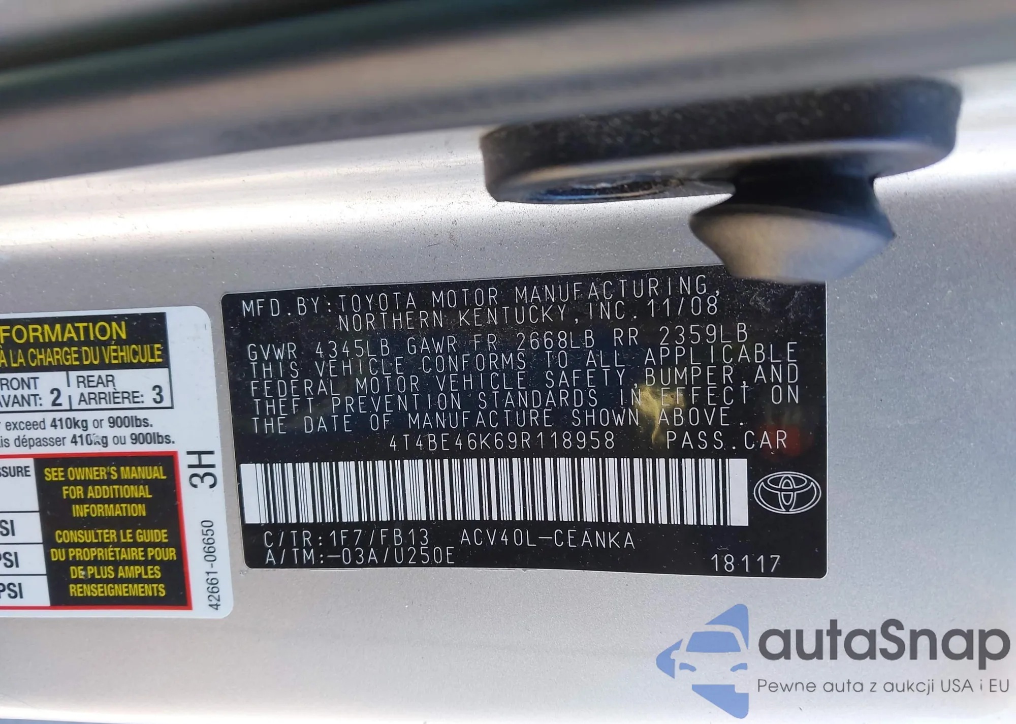 • VIN 4T4BE46K69R118958