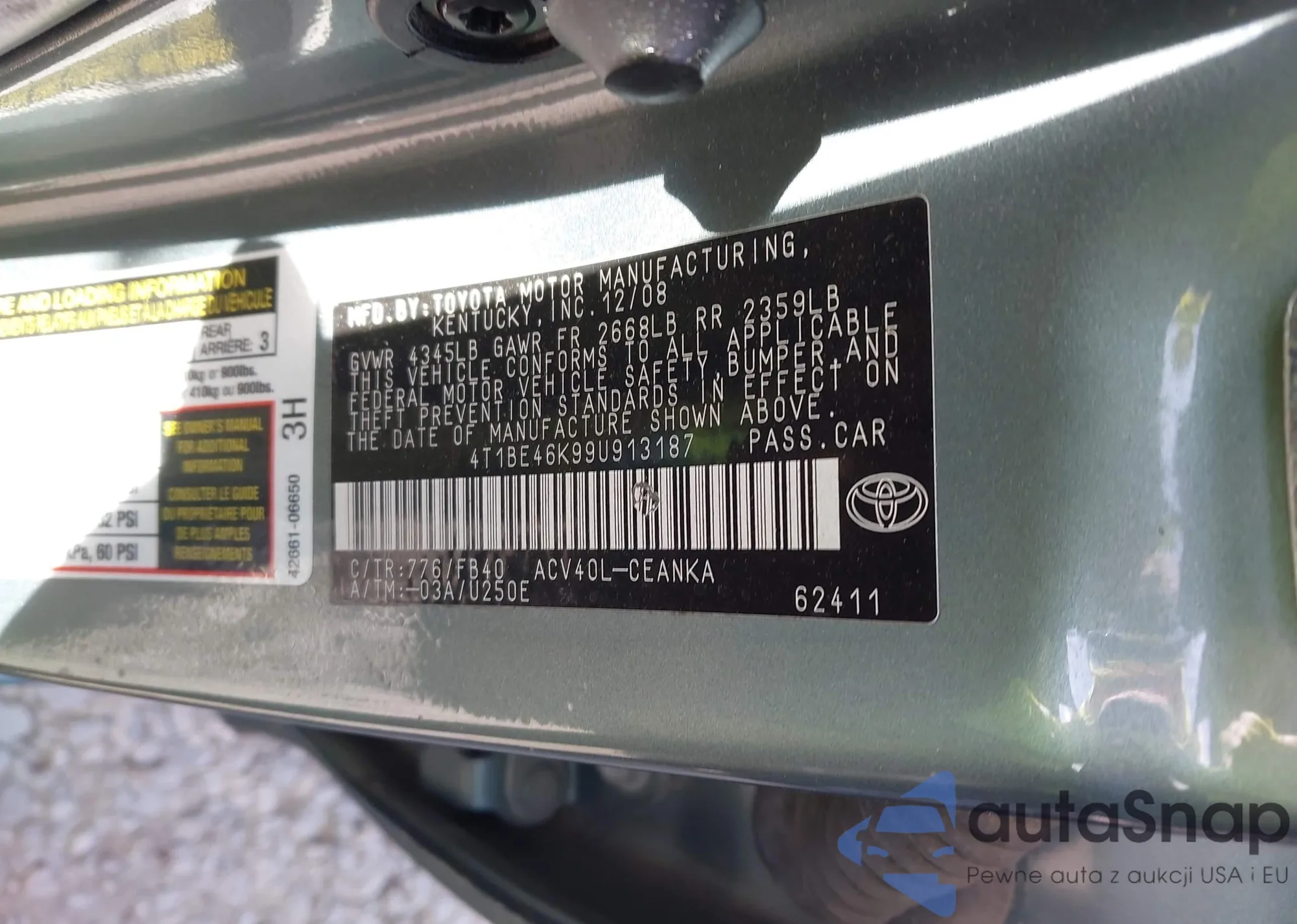 • VIN 4T1BE46K99U913187