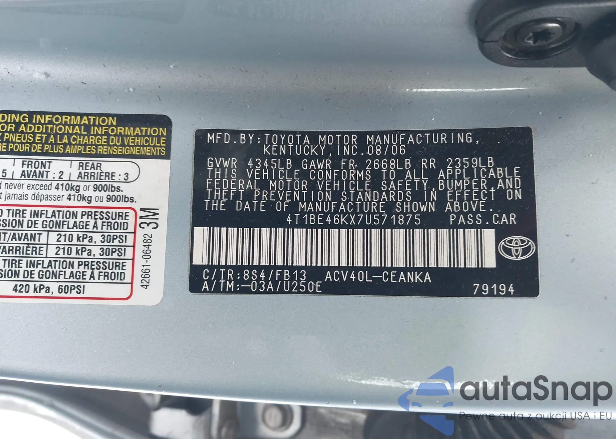 • VIN 4T1BE46KX7U571875