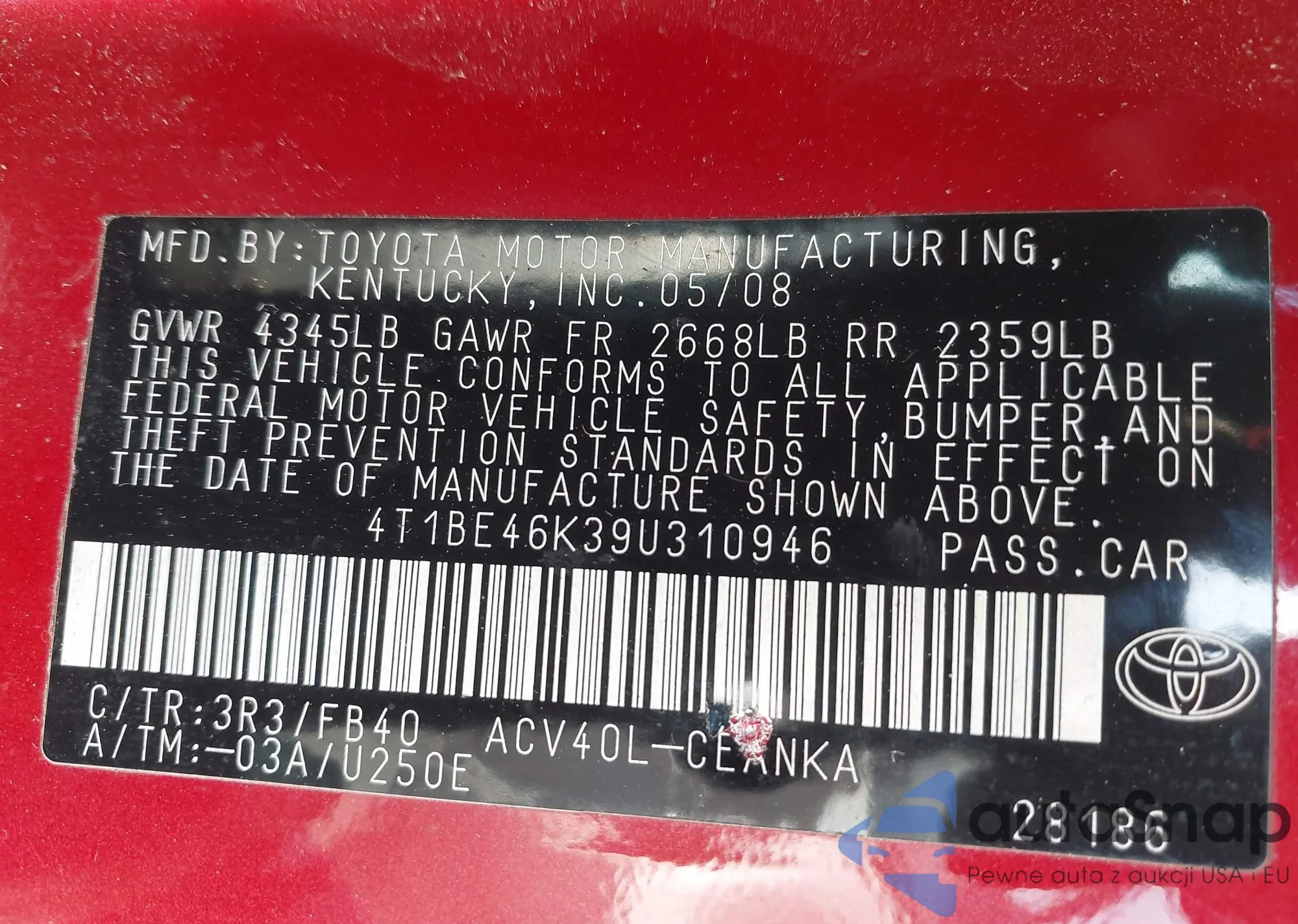 • VIN 4T1BF3EK8AU580848