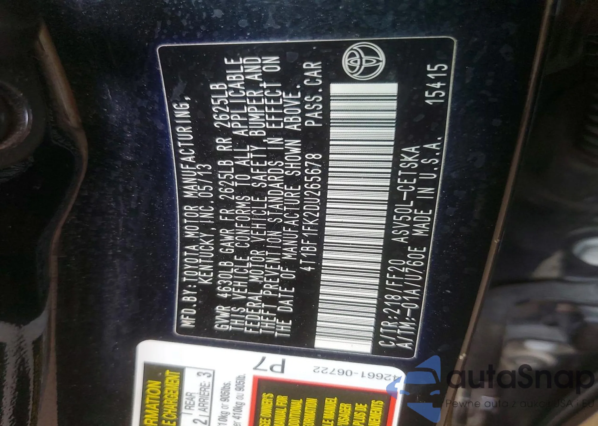 • VIN 4T1BF1FK2DU265678