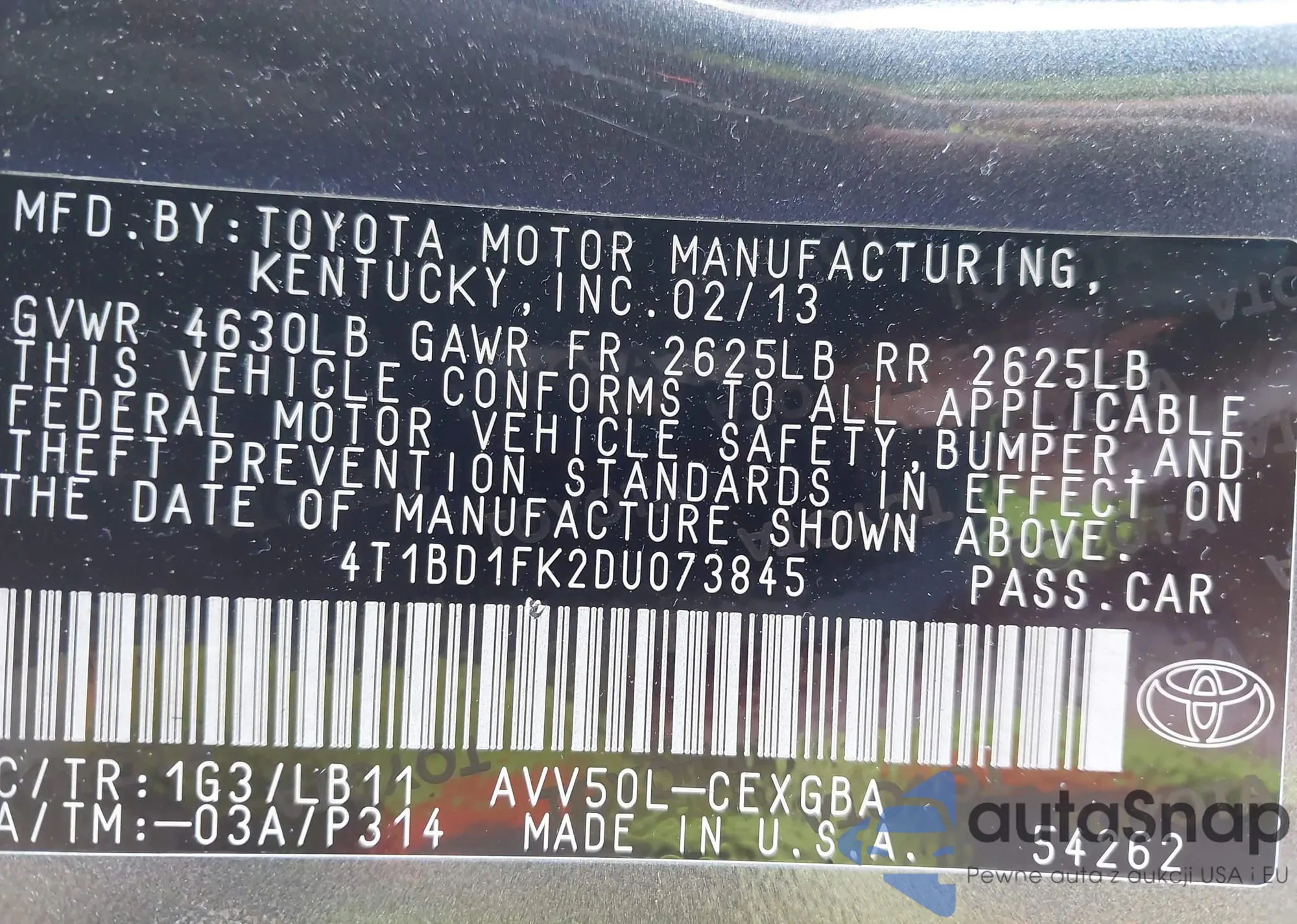 • VIN 4T1BD1FK2DU073845