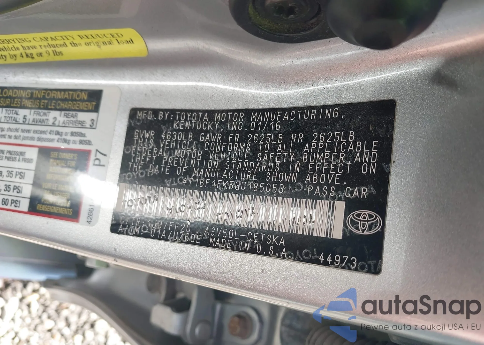 • VIN 4T1BF1FK5GU185053