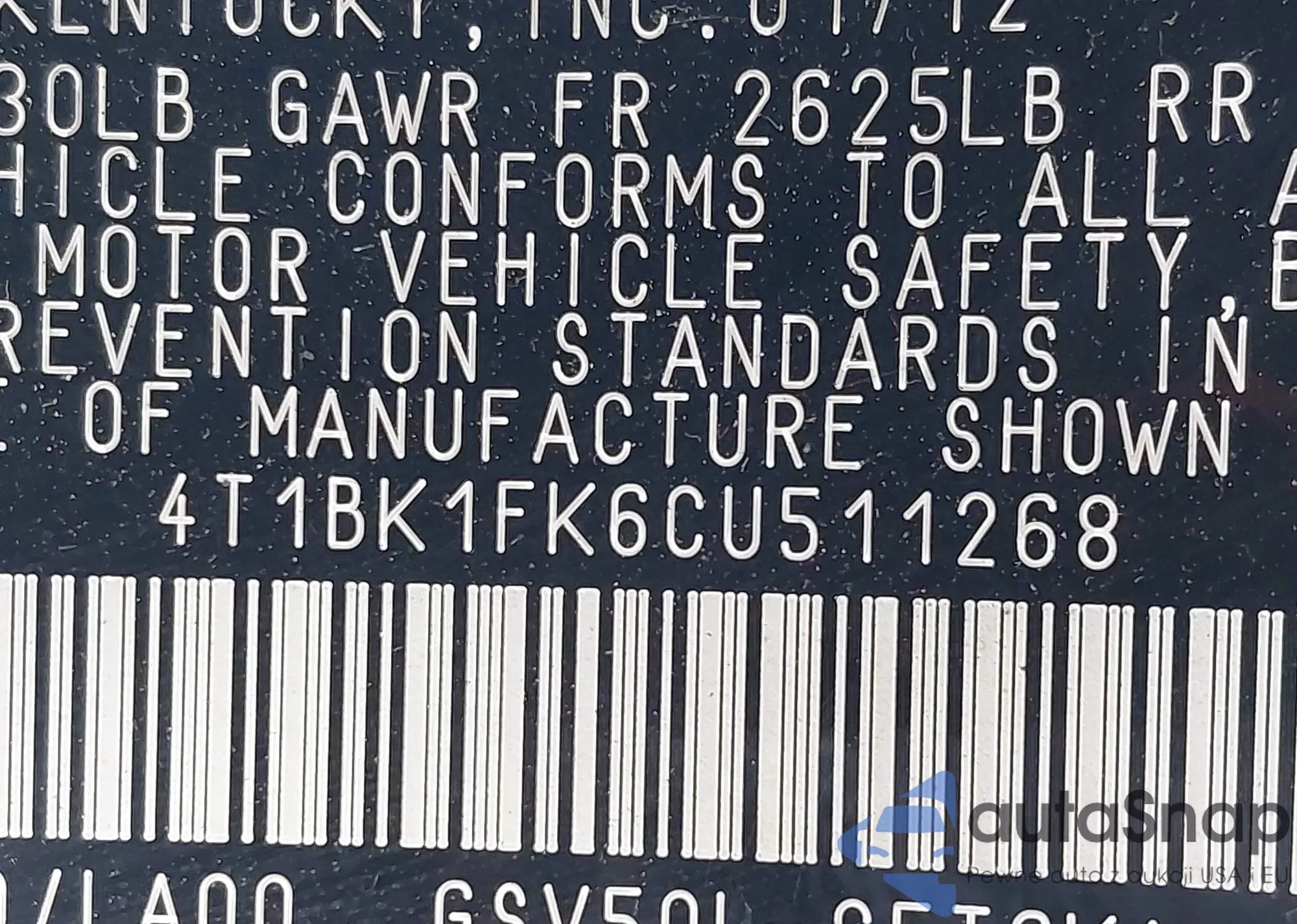 • VIN 4T1BK1FK6CU511268