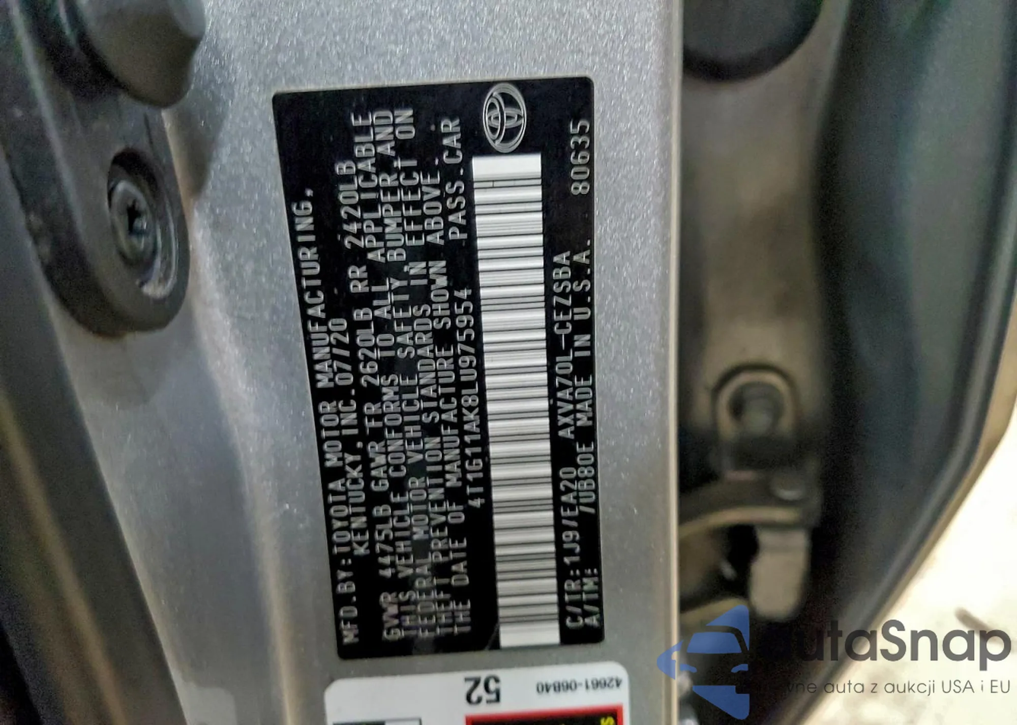 • VIN 4T1G11AK8LU975954