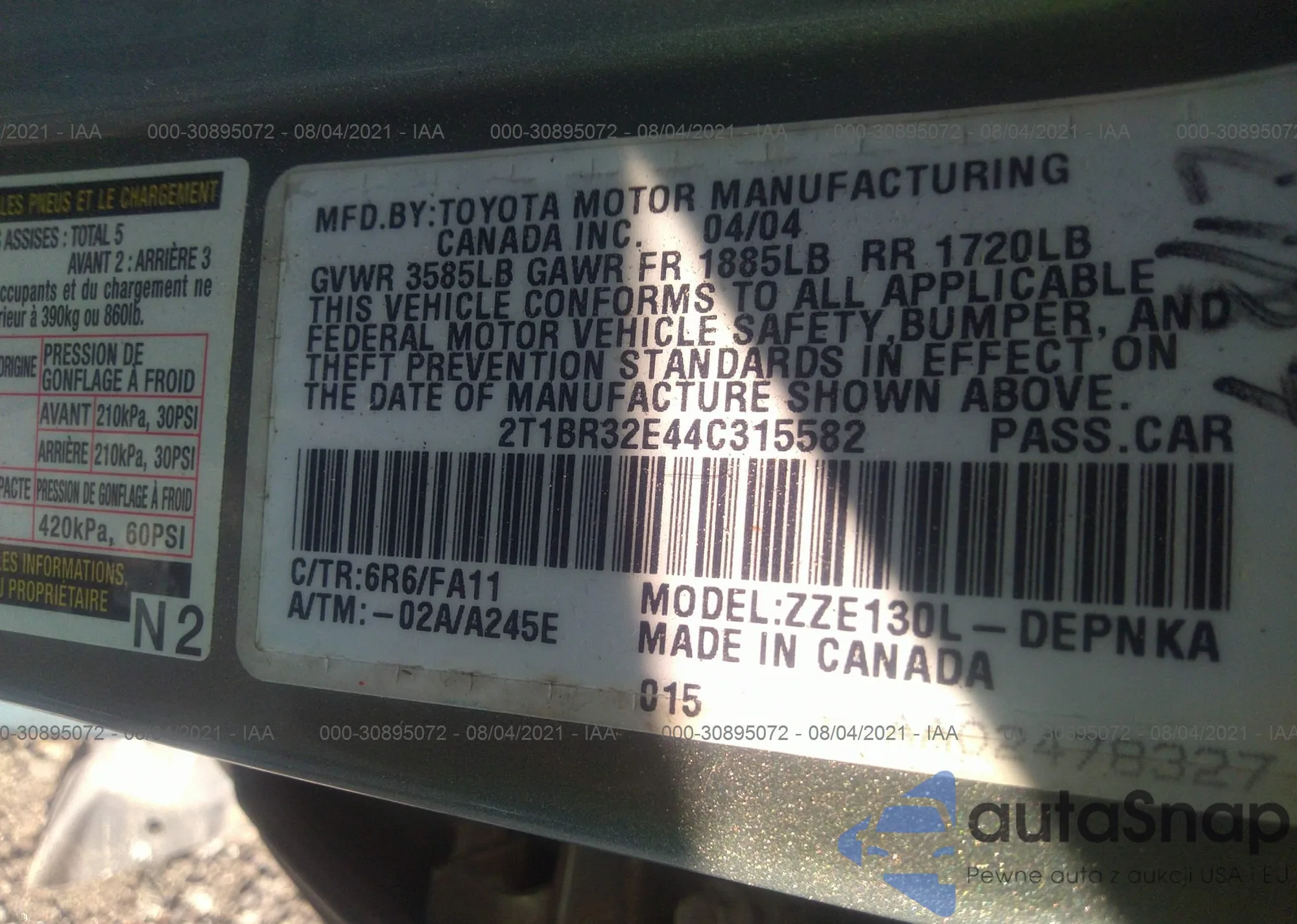 LOT: 43965605 VIN: 1NXBR32E65Z418387