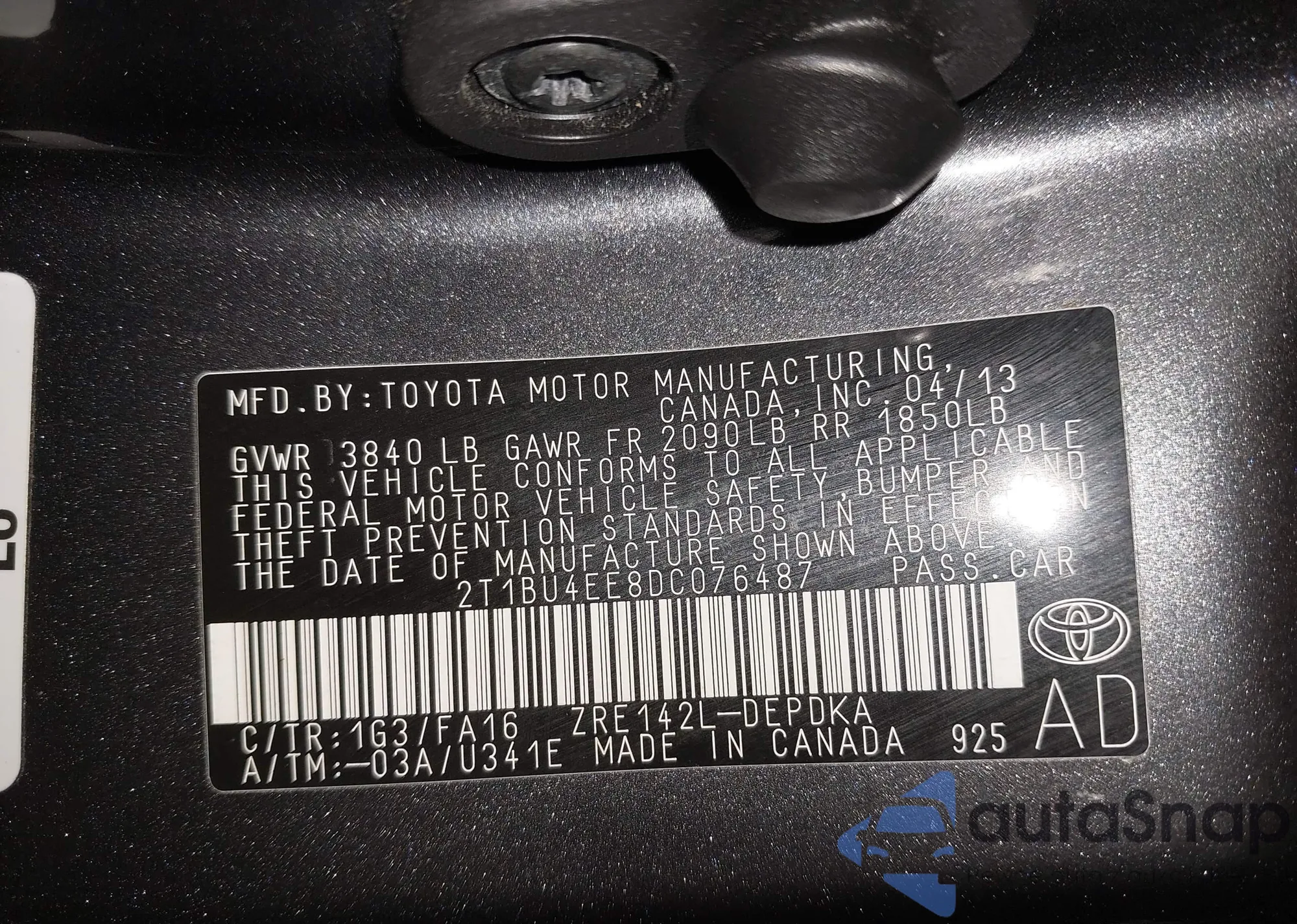 • VIN 2T1BU4EE8DC076487