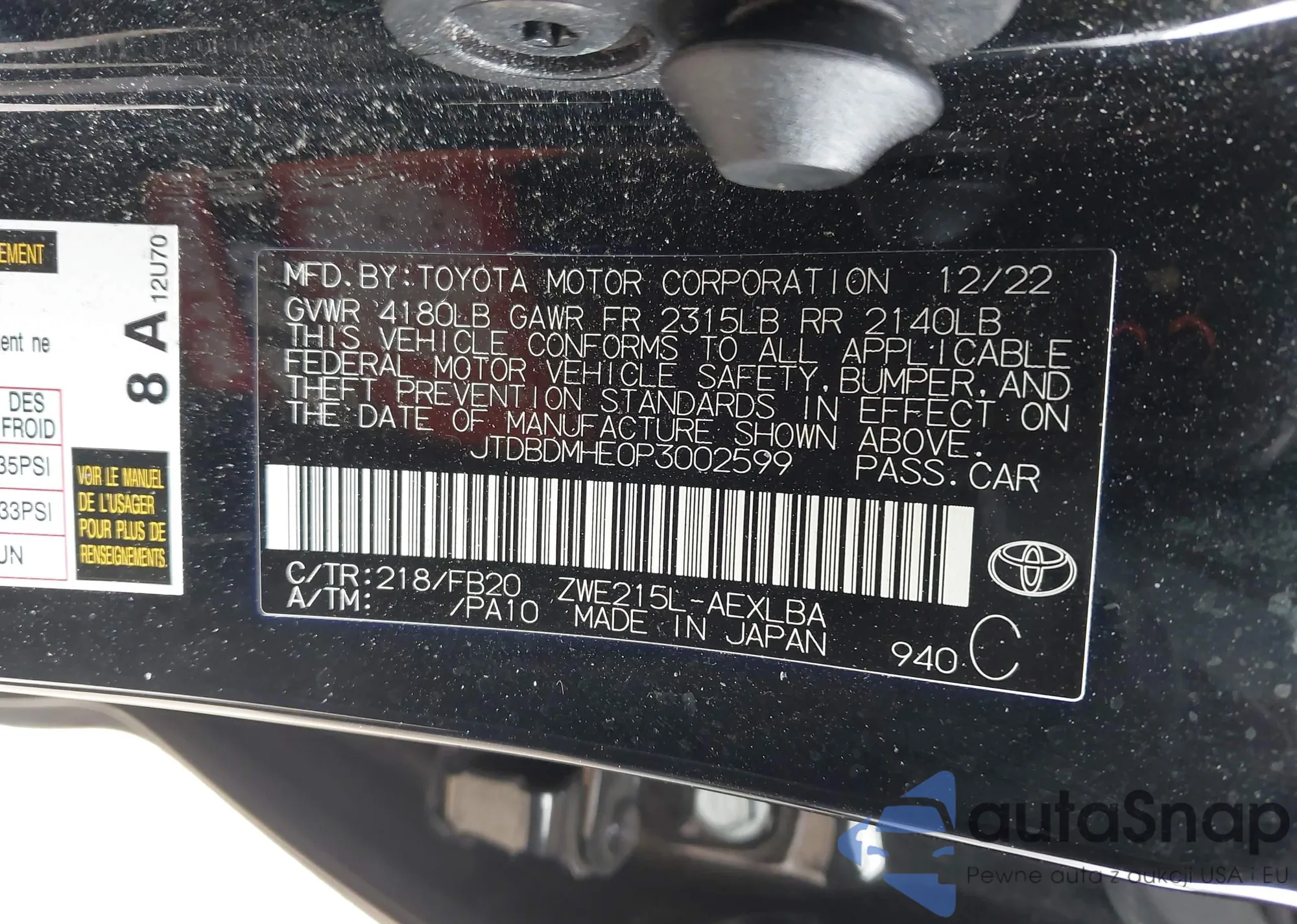 LOT: 44446938 VIN: JTDBDMHE0P3002599
