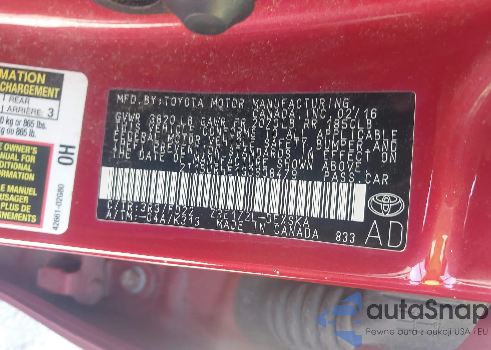 LOT: 44044752 VIN: 2T1BURHE2GC729165