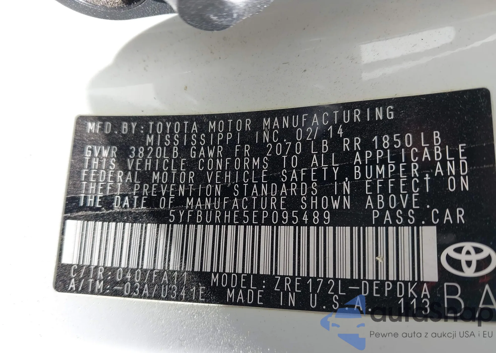 • VIN 1NXBU4EE9AZ224818