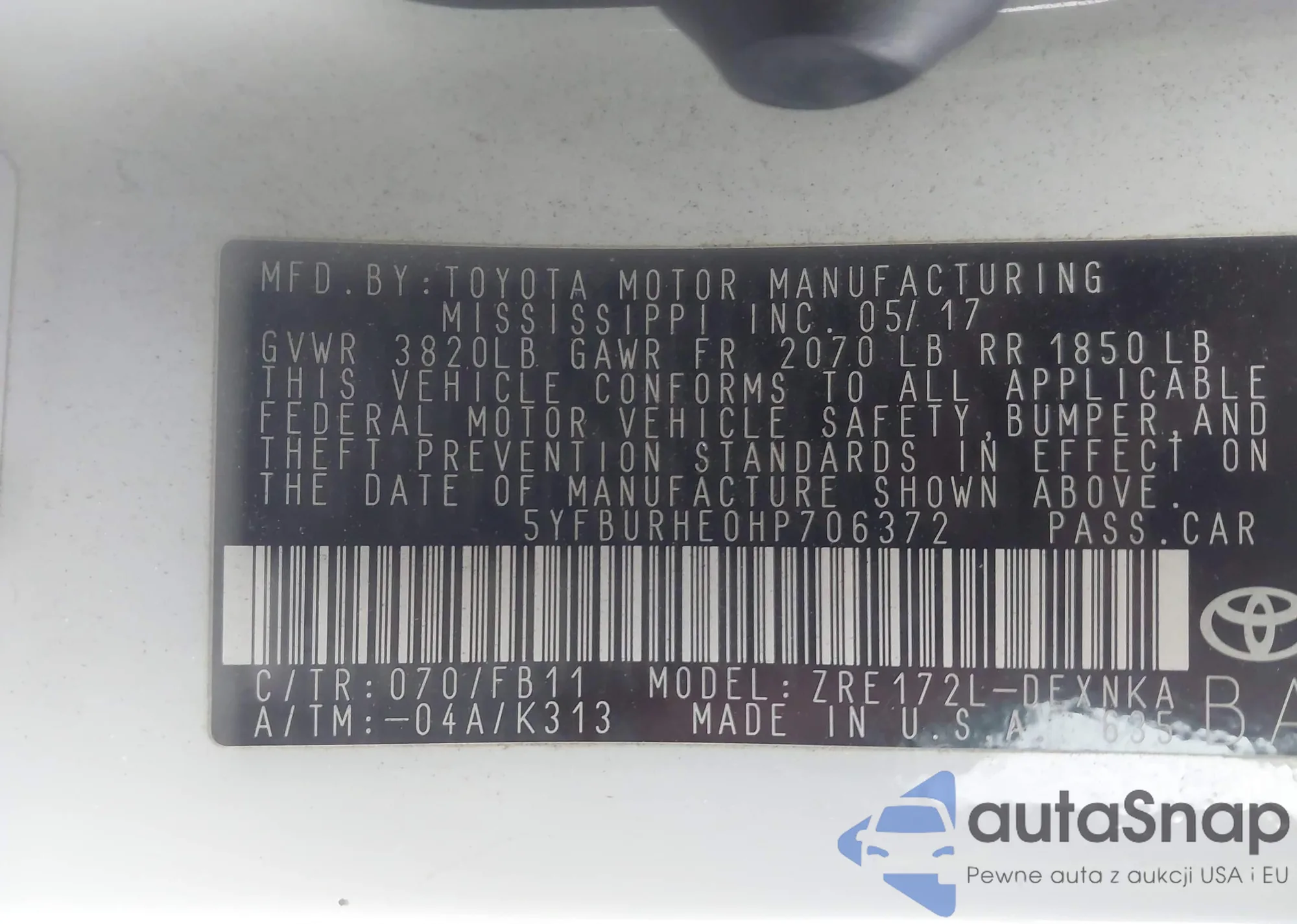 • VIN 5YFBURHE0HP706372