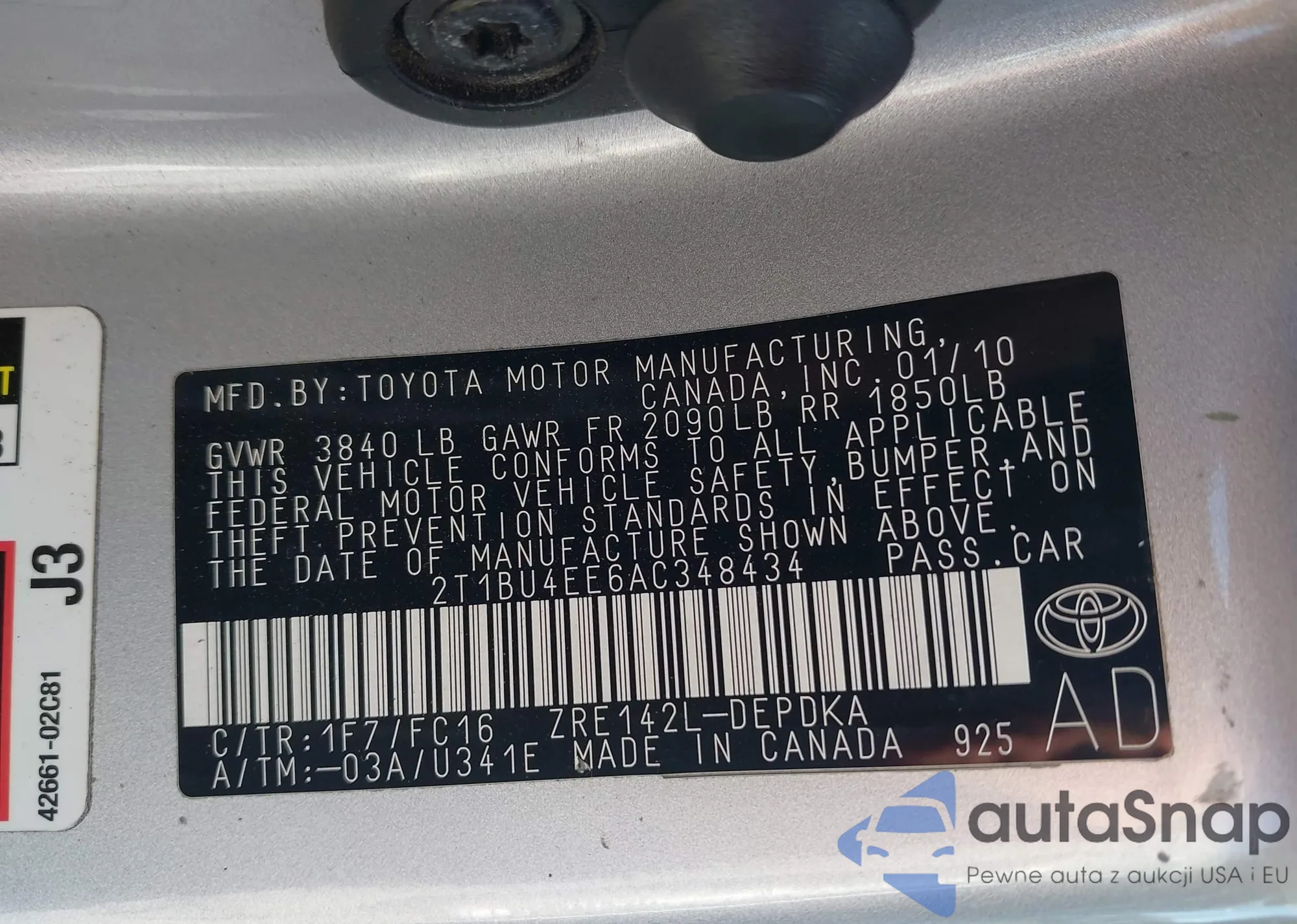 • VIN 2T1BU4EE6AC348434