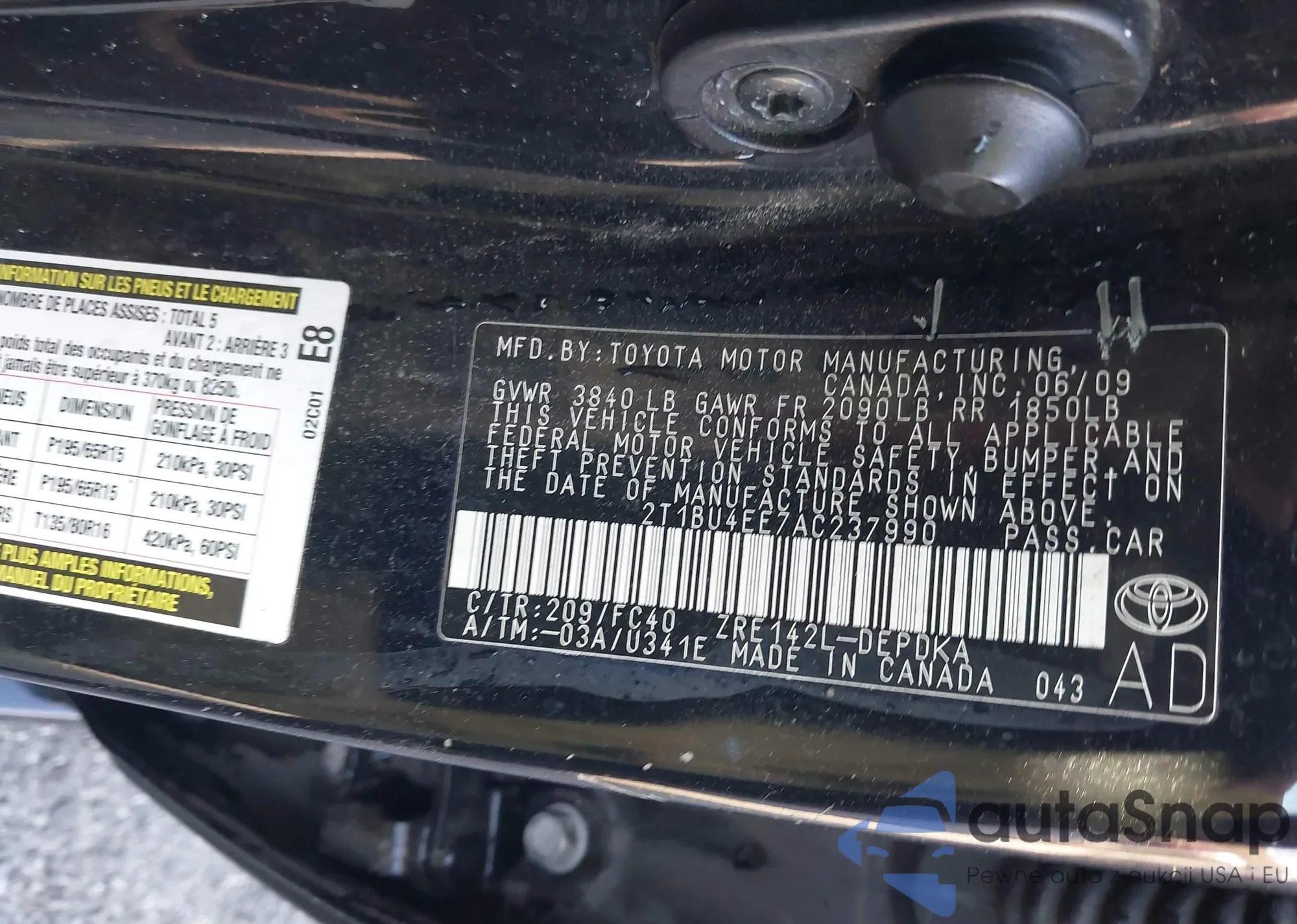 • VIN 1NXBU4EE7AZ370909