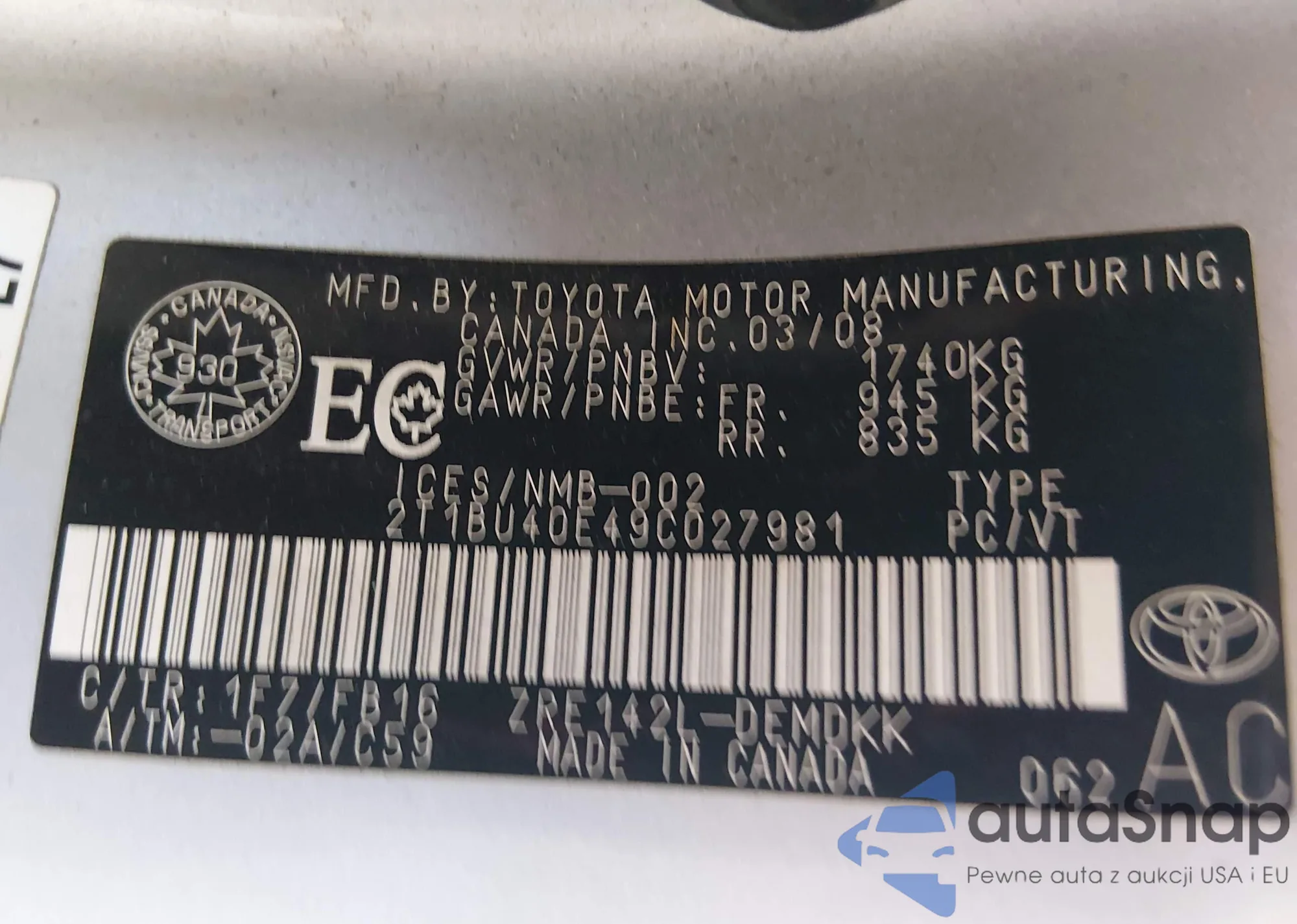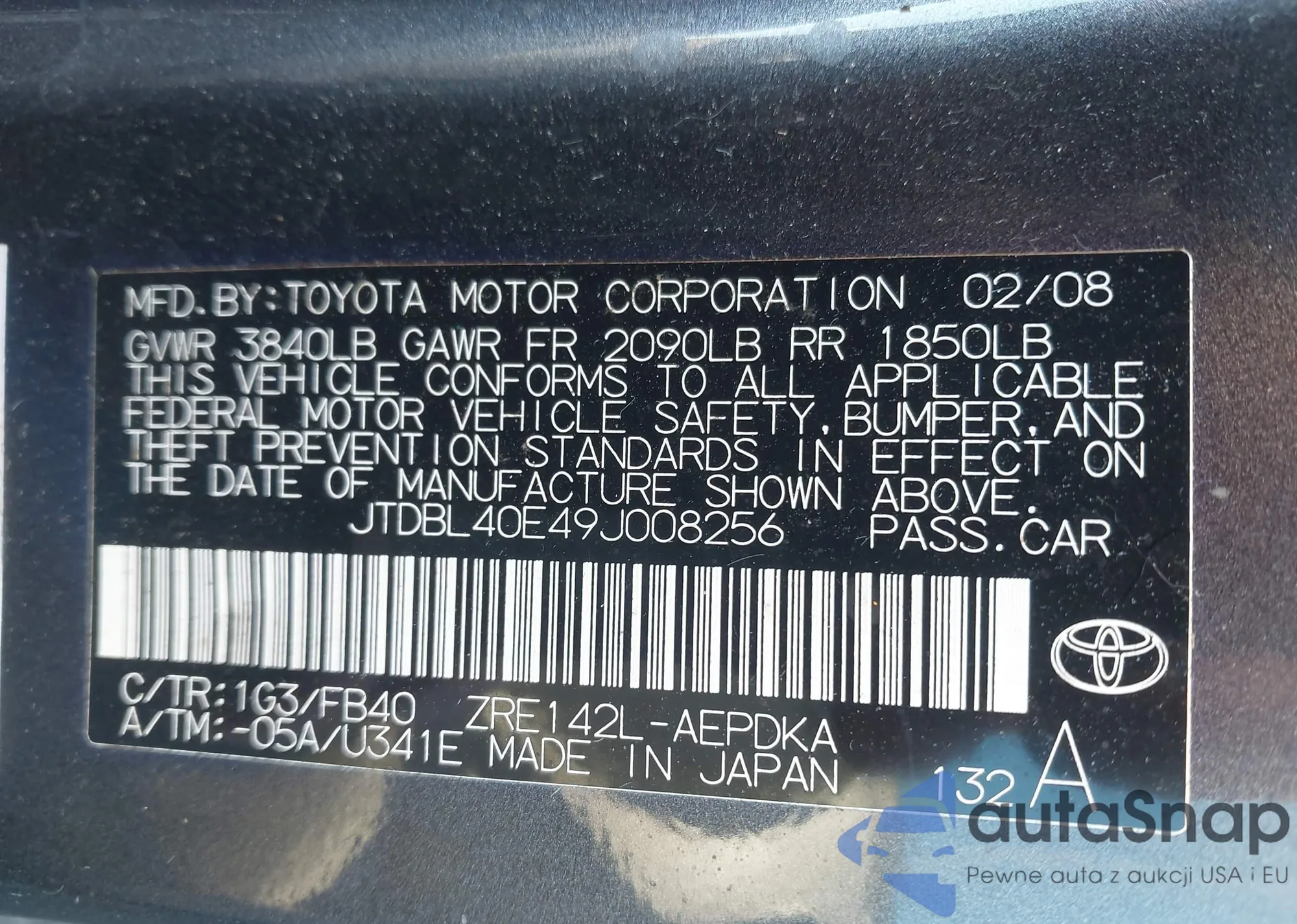 LOT: 44158033 VIN: JTDBL40E49J008256
